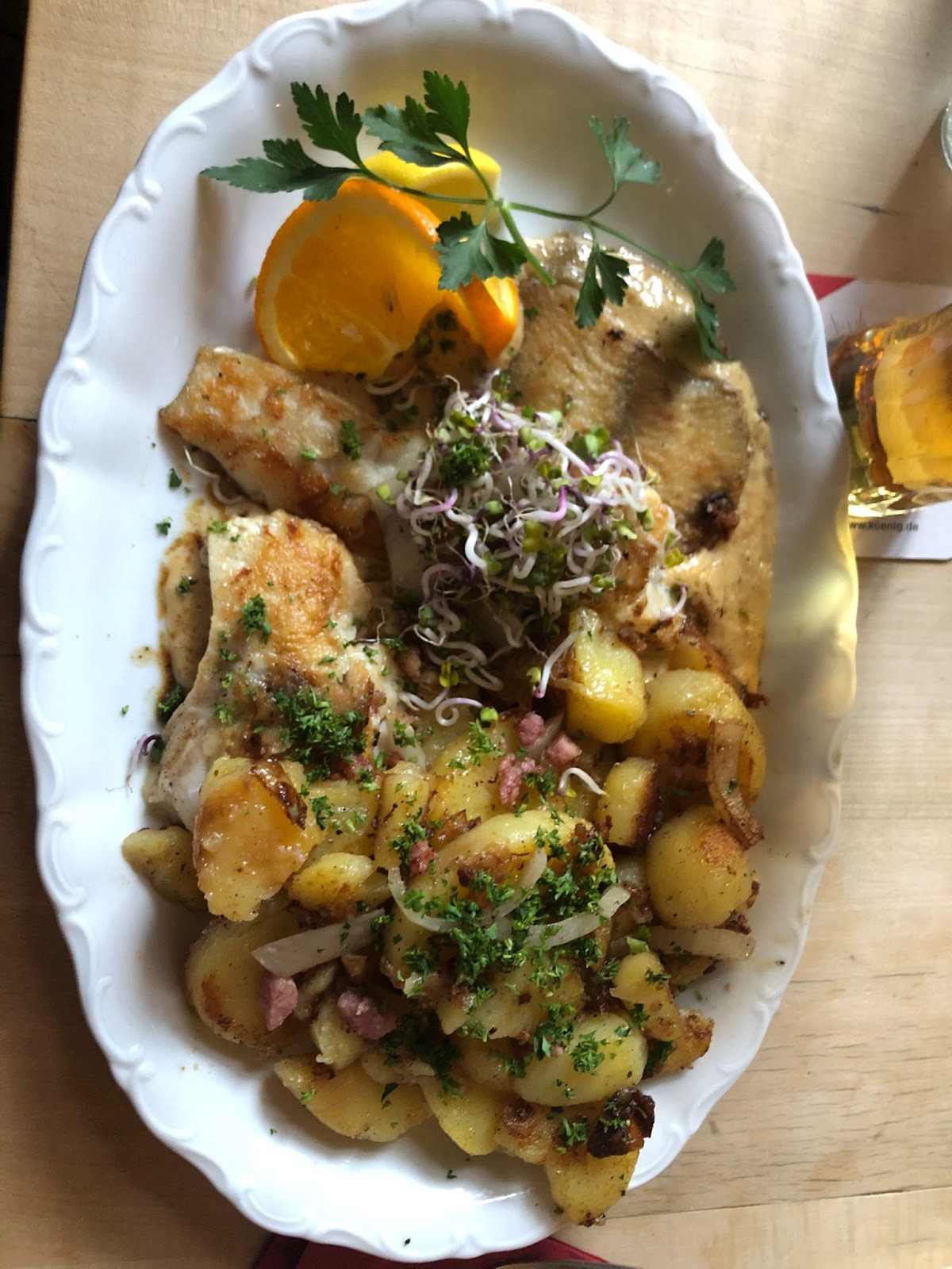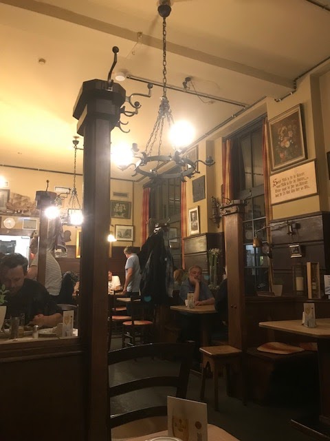 I loved this intimate old-fashioned place. North German fish specialities - I had the matjes herring with green beans u0026 lardons with fried potatoes, washed down with draught Bitburger. This place was a highlight. Reasonably priced too. I would definitely go there again.