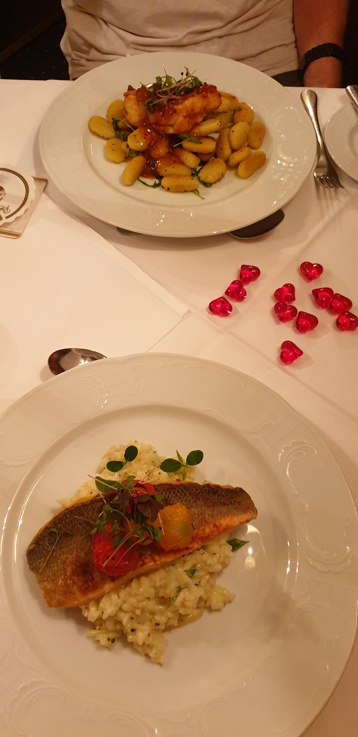 Unfortunately we sat right next to a family with smaller children, which disturbed the peace and atmosphere of the candle lift dinner. The announced rose petals could not be found, but the table was nicely prepared anyway.