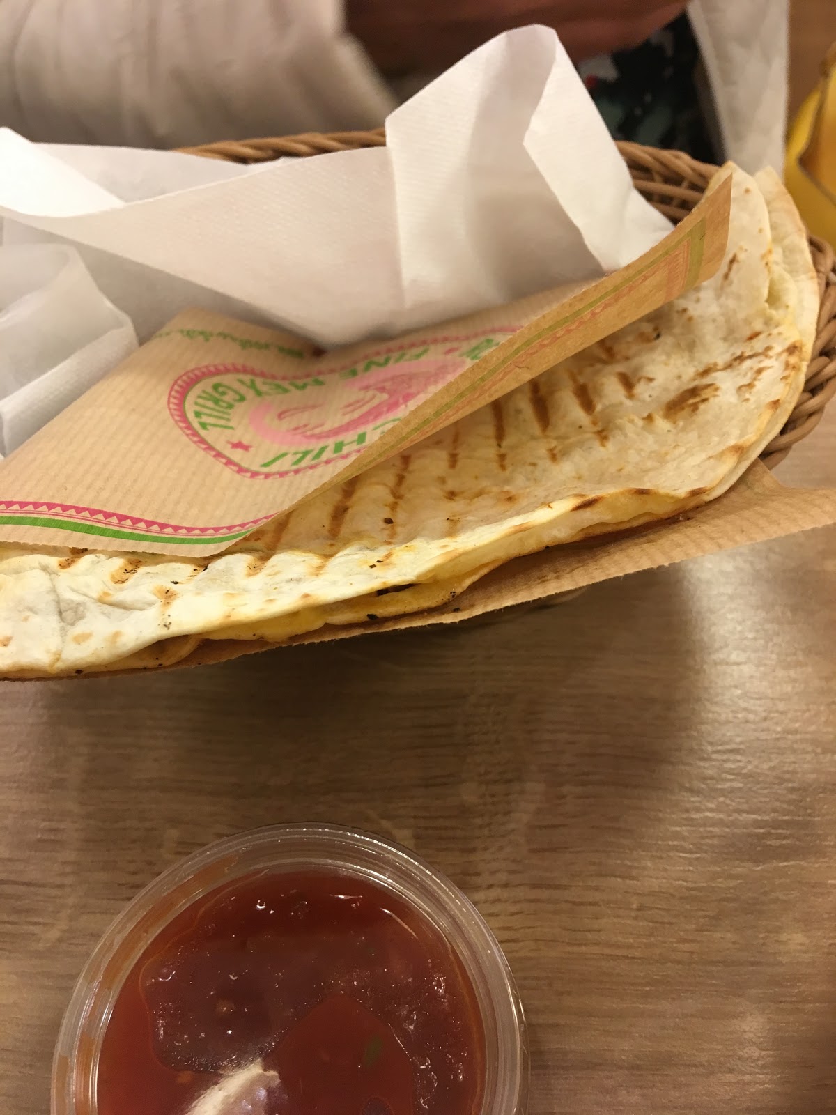 Had a quesadilla with Chicken filling snd spicy sauce.