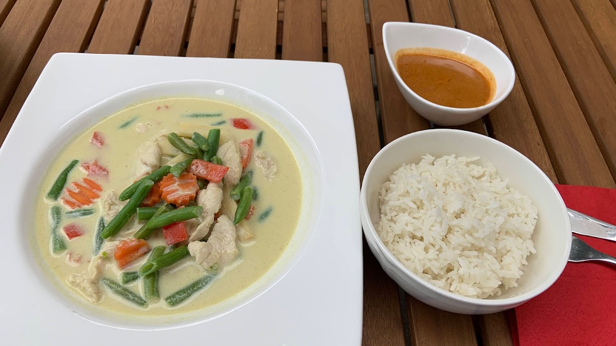 This was right next to our hotel and i was sick and tired of bread. It was pretty good. The green curry sauce was delicious but the veggies were a bit plain. The chicken skewer was also pretty good but a bit on the salt-ier side for me.