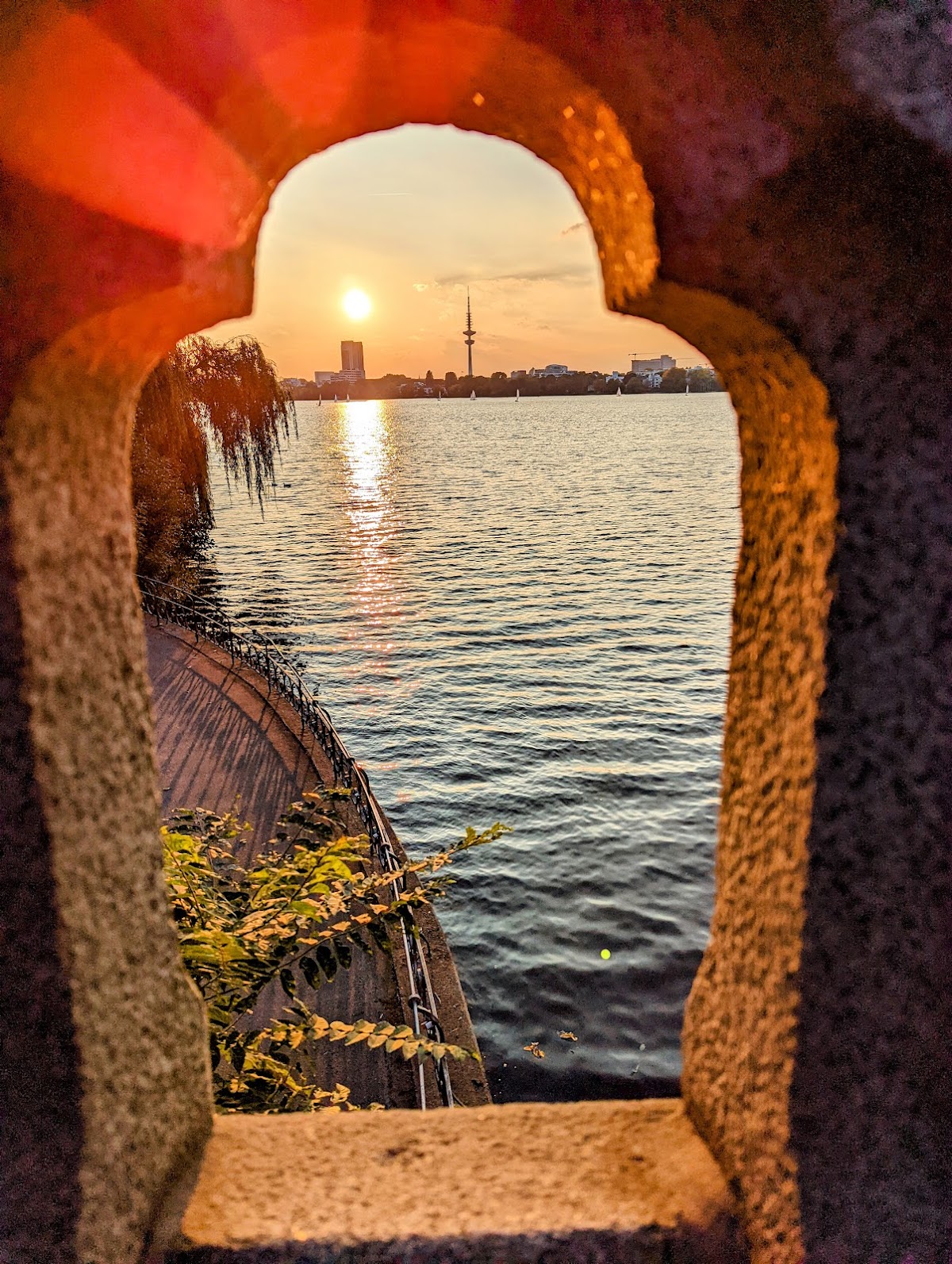 Прекрасный вид на альстер, отличная атмосфера и невероятные закаты. Панорама открывается на альстер, телевышку. Сотни любовных замков висят на заборе моста. Приветливые люди и талантливые уличные музыканты играют тут. Обязательно советую посетить всем это прекрасное место.