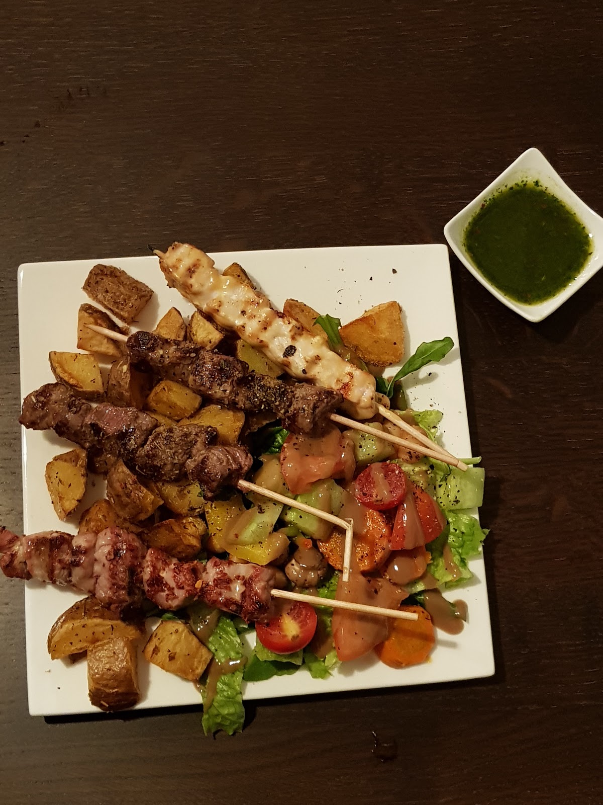 Awesome grilled potatoes, nice choice of dishes, good dips, okay meet, terrible service.