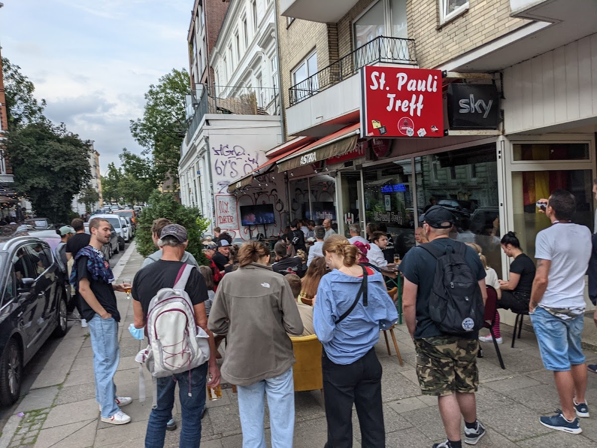 (Translated by Google) good place for football TV, we watched women's EM, the smokers smoked outside because two families came with children and the landlord arranged it happily and the other guests accepted it, St. Pauli is just different