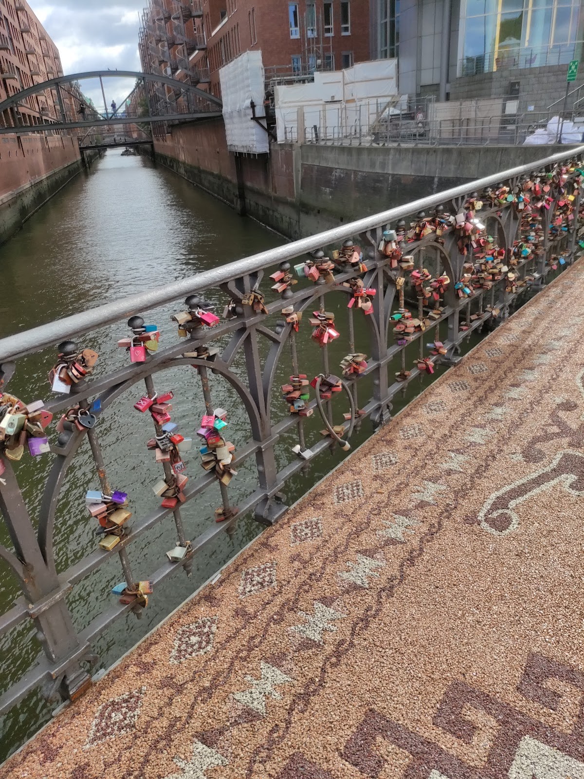 Auf den Weg in die Speicherstadt soll der aus Marmor Granulat bestehende Steinerne Orientteppich an den größten Umschlag Platz im Hamburg hinweisen. Schöne Brücken Gestaltung die Mann Frau selten sieht. Wird leicht übersehen und dadurch auch übergangen.