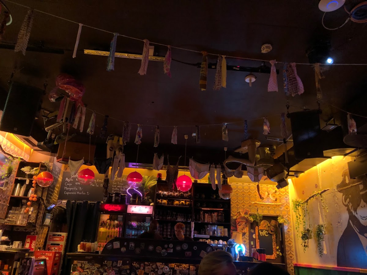 [English] Probably the best place I went to in Hamburg for a night out. Beer/drinks at a reasonable price, eclectic (to say the least) ambiance, some of the best music remixes and beats I've ever heard, and they used to have a SNES before someone stole it ca. 2011. I've been every time I've visited and I'll continue to go back - definitely recommend it! For US persons that aren't used to smoke - get used to it! :-)