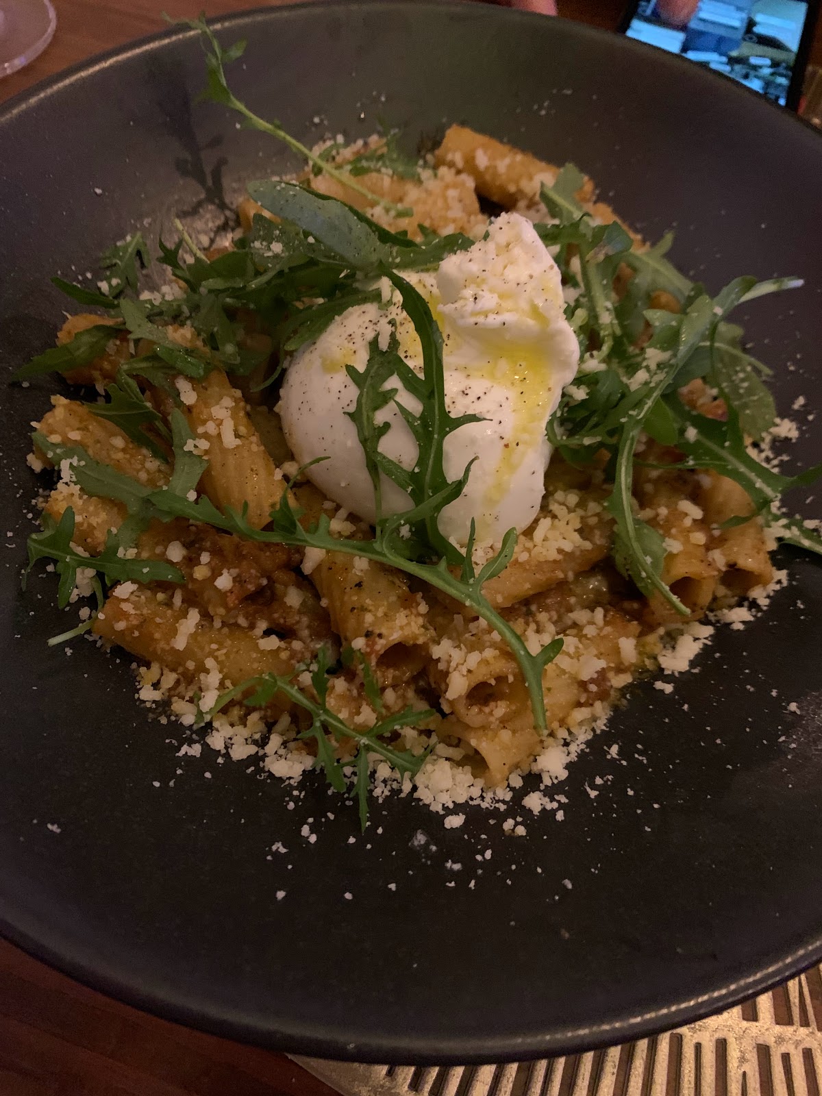 The pasta with tomato sauce was so bland. No deep flavor even when there is meat in it. The sauce was also very loose and didn't stick much to the pasta and lasagna. It is a shame to offer this in an Italian restaurant. The panini is ok, but overpriced for what is in it. And as you can tell from the photos, ruccola everywhere ....