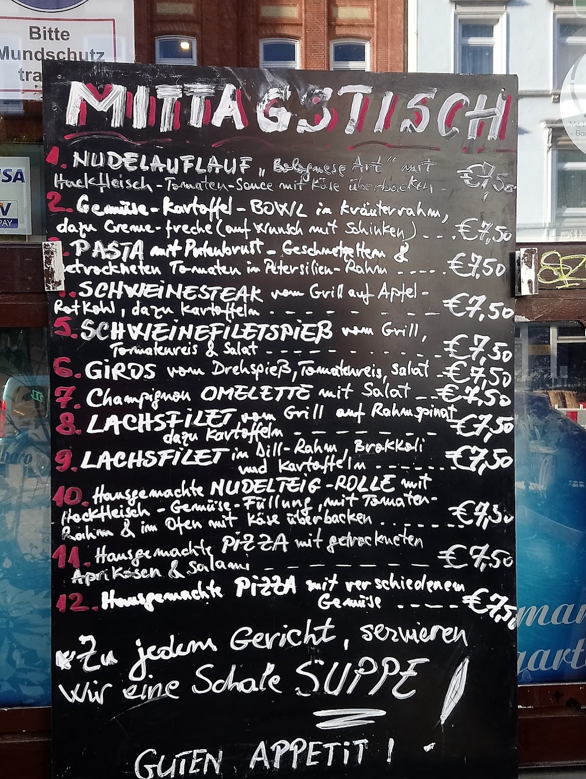 Food like with friends ;) We have been coming here with father, daughter and friends for twenty years. A friendly togetherness and warm loving hosts as I wish for more in Hamburg! Pizza very good and the environment original, as it was a former wine and spirits store (1828!)_ anytime again, greetings!