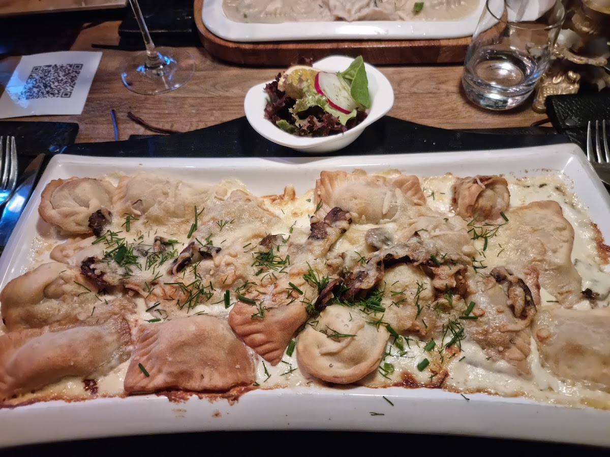 I liked the dishes in general. I found fried Teigtaschen were very “heavy” for my stomachs to process and I could not enjoy the taste of filling. The reason for that is that sauce has a very active taste and “beats” the original taste of Teigtaschen.