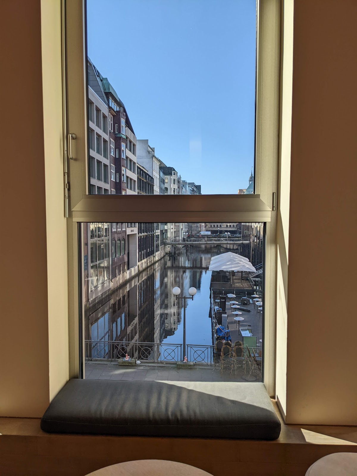 The view across the canal is great. I worked from here from 11.30am to 5pm, ordered two coffees and a bagel. The barista very kindly told me that there is an outlet upstairs. Can get busy at times downstairs but otherwise a great place to work from