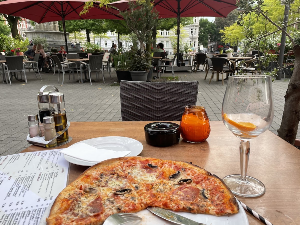 On a business trip in Hamburg and stopped in here for dinner. Had a very good prosciutto pizza and great service. Did not have desert (too full) but it looked good at the next table over! Highly recommend