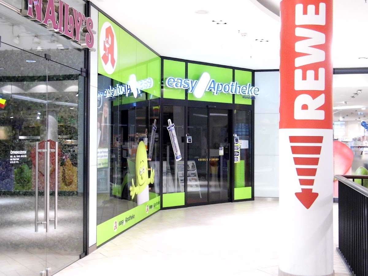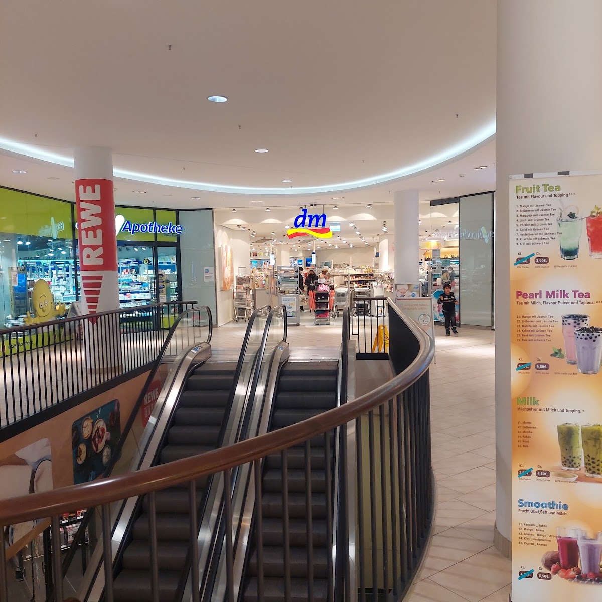 Rewe, Decathlon and DM (plus Apotheke and small local business).