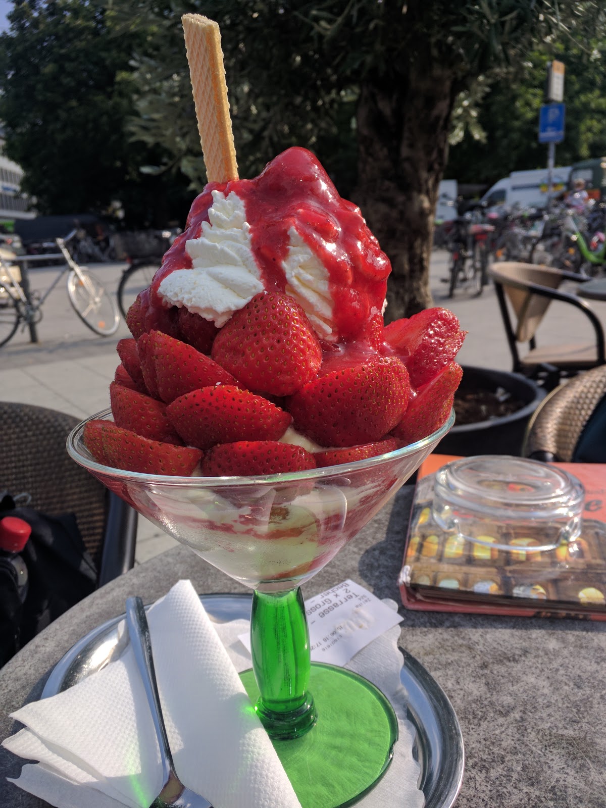A great place for a continental breakfast and coffee. You can watch the world go by as you enjoy the generous portions of cold cuts of meat and cheese. Recommend the fitness and classic breakfast, came back on every day of my past 2 trips to Hannover. Also enjoyed a gigantic ice-cream on a nice sunny day. As an international traveller my only comment would be to have more pictures in the menu. Will be back when I'm in town