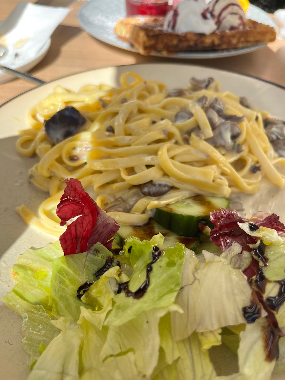 Gemütliches Café mit grosser Kuchenauswahl und vielen Kleinigkeiten wie Waffeln und Toasts. Bedienung freundlich, allerdings sollte das Personal noch besser zu den einzelnen Produkten geschult werden. Auf Rückfragen zu Zutaten für den Kuchen/Torte (bzgl. Gelatine) konnte leider keine der Mitarbeiterinnen weiterhelfen.