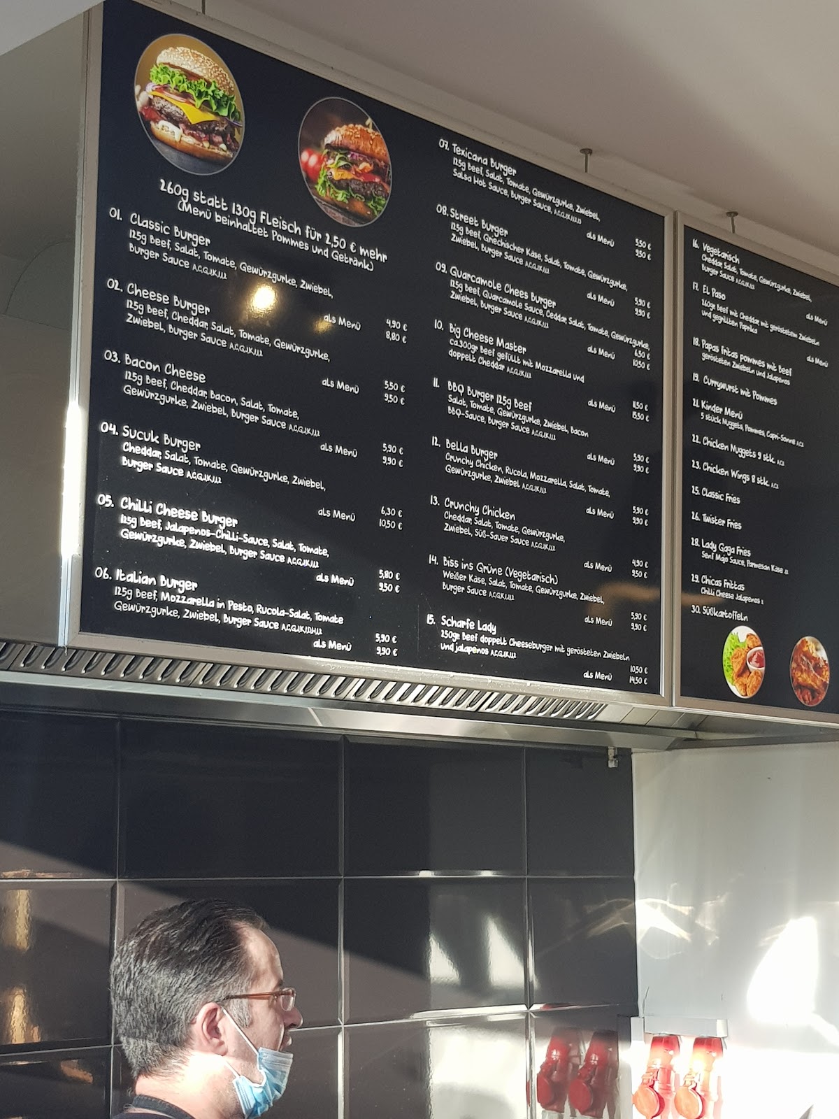 Es gibt Burger in vielen Varianten und sind sehr lecker. Die Pommes sind auch lecker und am besten, wenn man diese dort genießt.