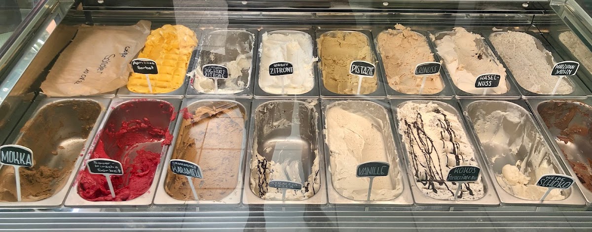 Since the ice cream parlor is quite small, the selection remains modest - especially in relation to these large ice cream chains that are now everywhere. Here we see in particular the charm of classic craftsmanship and the love that was put into each individual ice cream flavor. We were able to test our way through 10 (or 11?!?) varieties.