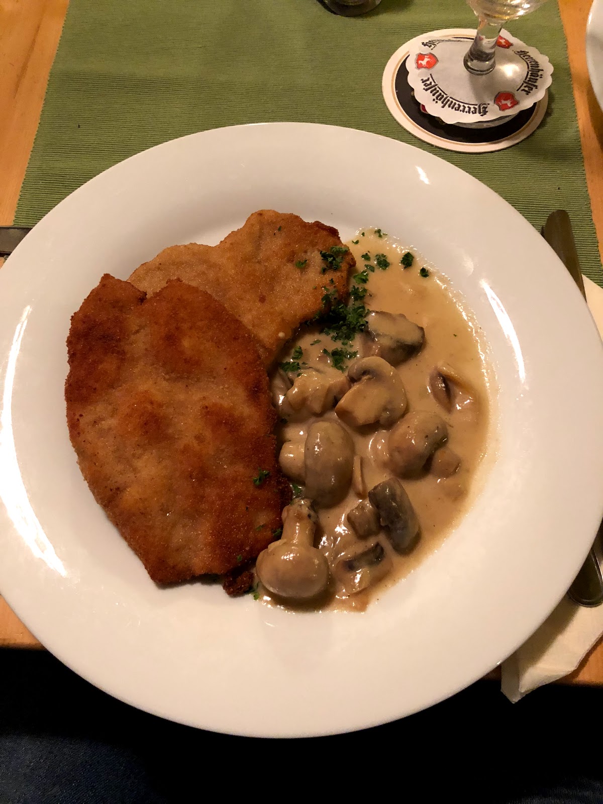 Warm and friendly atmosphere and service and delicious schnitzel!
