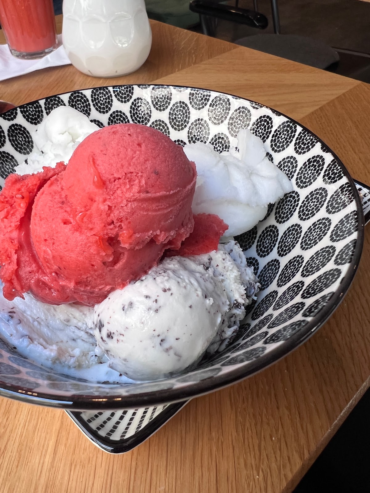 It was one of the hottest summer days and me and my friends were on our way out of town and we still wanted to grab some ice cream before leaving town. We'd passed all the other ice cream shops on the main street, and we were about to get to Bismarckplatz when we saw this place! We went inside and the place had A/C - for a heated day like that, this was really necessary LOL. The staff was really friendly and they claimed that the all their ice cream was based on water and no dairy? I couldn't find this information anywhere to confirm it, but we believed them when they said it. When it was my turn to order, I got three scoops and the lady was really generous with my order! This was my first real ice cream of the year and it was delicious! I'm definitely going to be coming back here more often