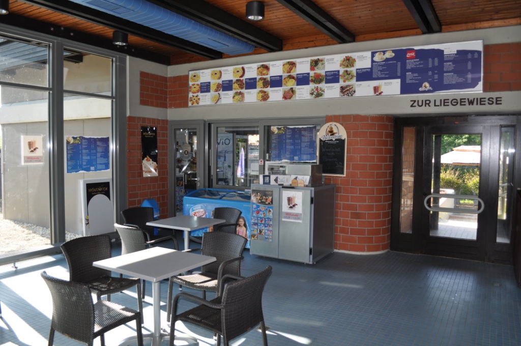 Betr.: "Köpfel" mit Pizzaangebot, außerhalb des Bades.