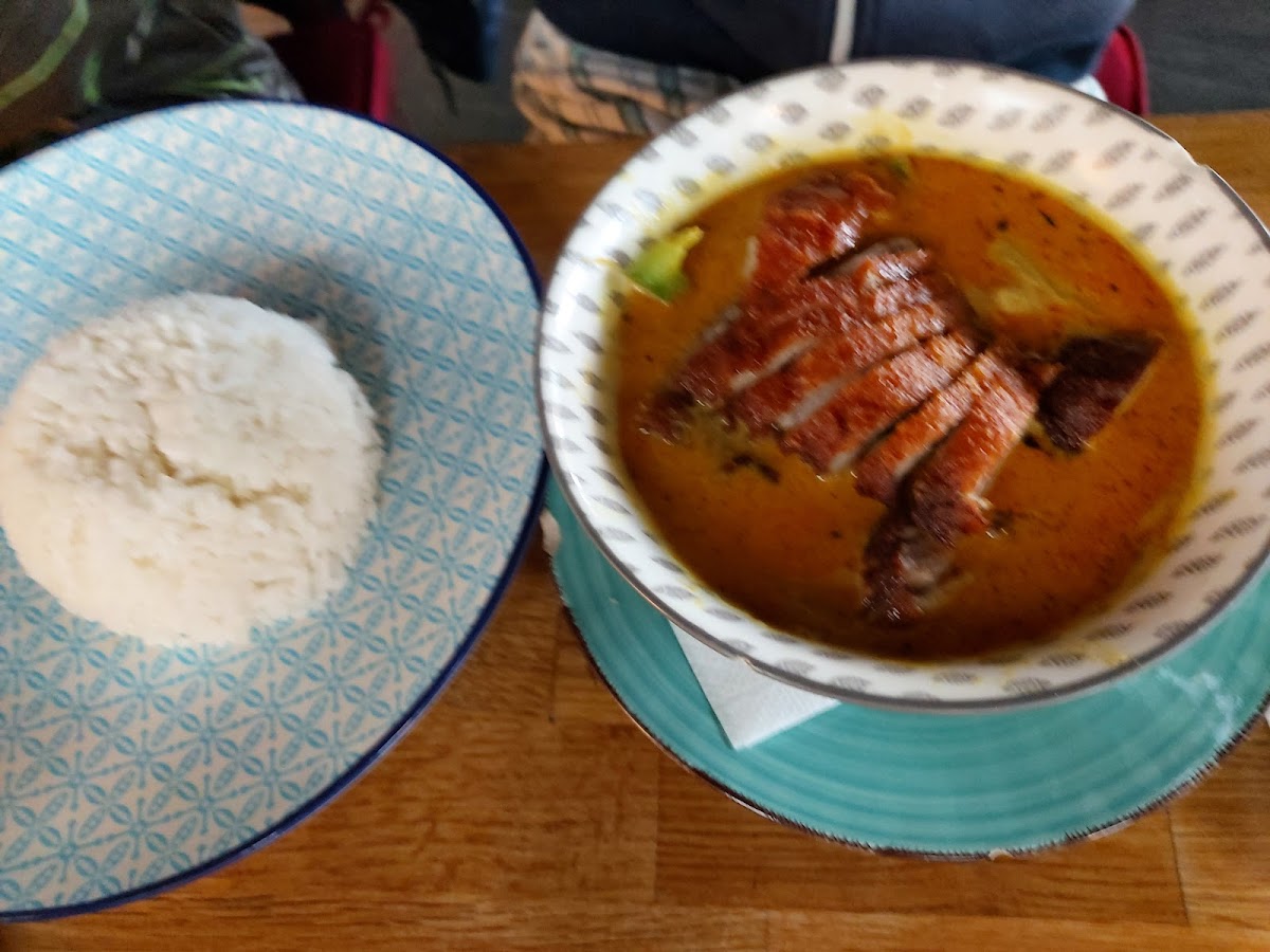 We had the pad Thai duck, and the Penang curry with pork. Both were ample servings with fresh ingredients, and a spice level that was tasty but not hot. Go in the left side to order, then sit in the right side dining room to wait for the food. It arrived in 10 minutes.