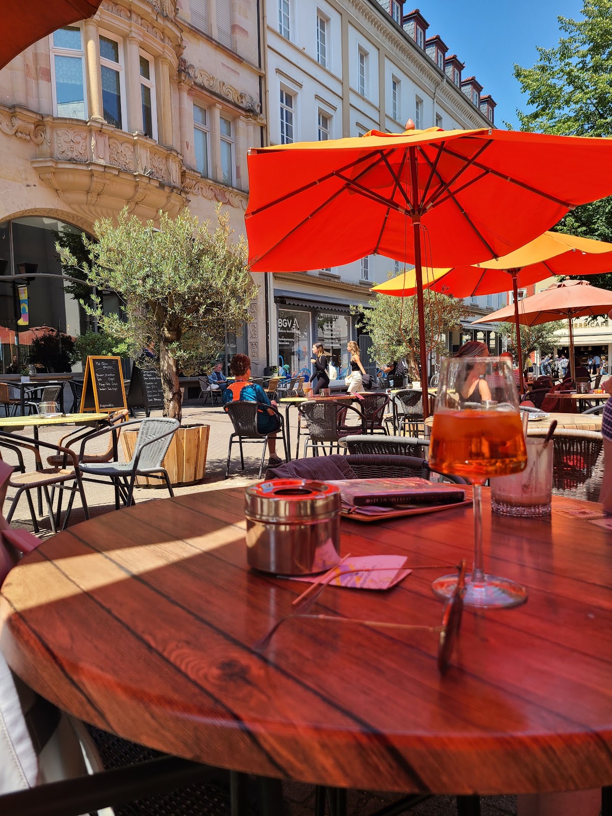 Really nice bar with a fun concept! Over 111 cocktails, craft beer and wine. They offer a rotation of drinks for 20% off and daily specials. They have a nice menu with salads, bowls, pasta, burgers, flammkuchen, vegan options and more! They have nice cakes and great coffee. You can’t go wrong! The location is perfect if you’re out in the Heidelberg old town. Inside and outside dining. The prices are higher than average, and the quality is great. I would not recommend the cauliflower power salad. Too many cherries and the flavors don’t go well together.