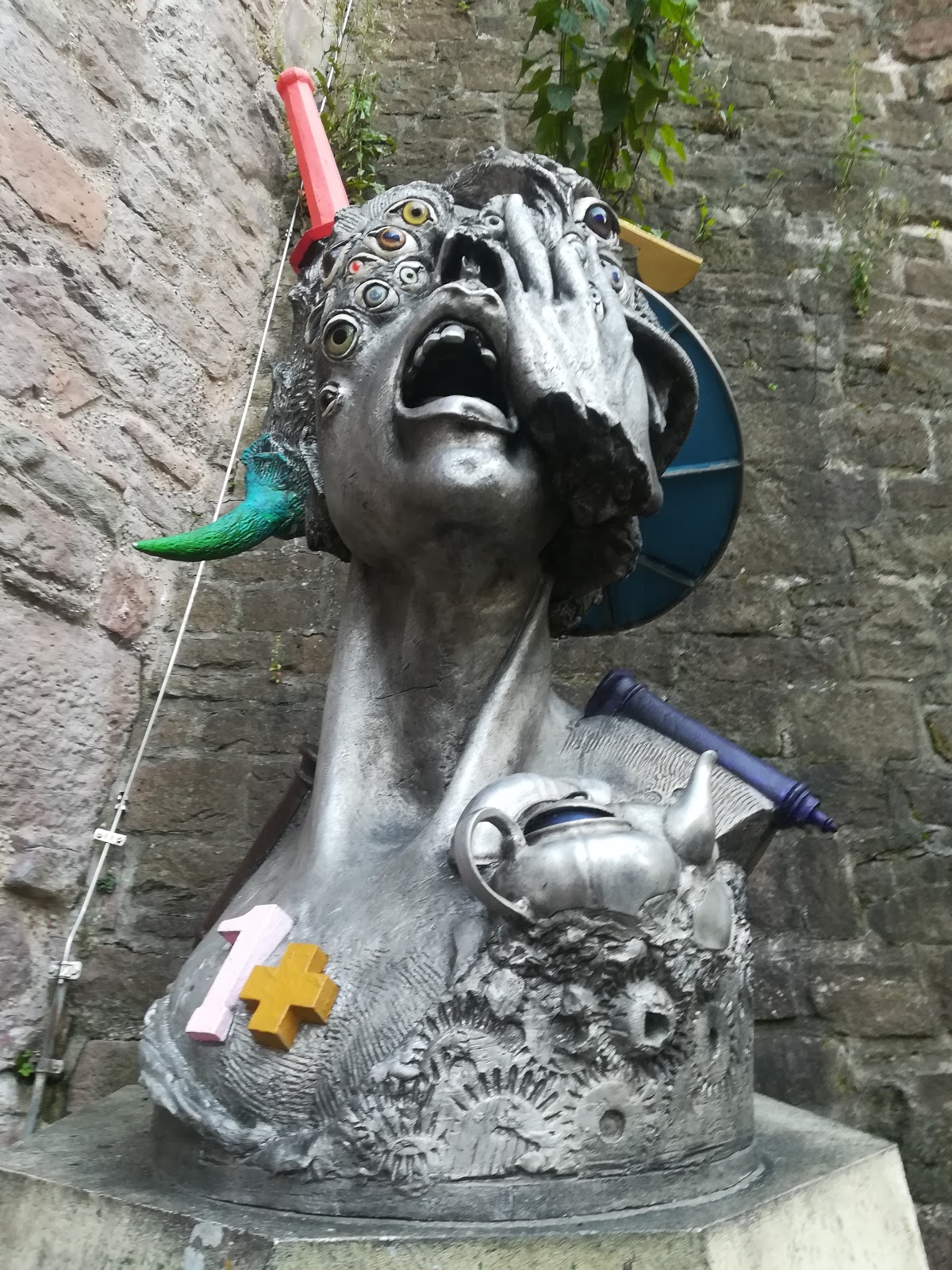 (Translated by Google) On a hike along the Philosophenweg, I came across a mystical something. It was a whisper, a sham, a metaphor for the loud silence that surrounds us in the current times. It took me deep into the forest, deeper than I had ever dared. That's when I heard it: a long drawn-out screeching that slowly got louder. It tugged at my eardrum, penetrated deep into my head and suddenly, it was still... I was standing next to a murky pond, fed by a glowing spring. Just below the dirty surface of the water I saw it: the spirit of Talos! He slowly emerged, like an old creature waking from its rigid state. The water rippled, his head broke the surface, and his maw drooped over me...