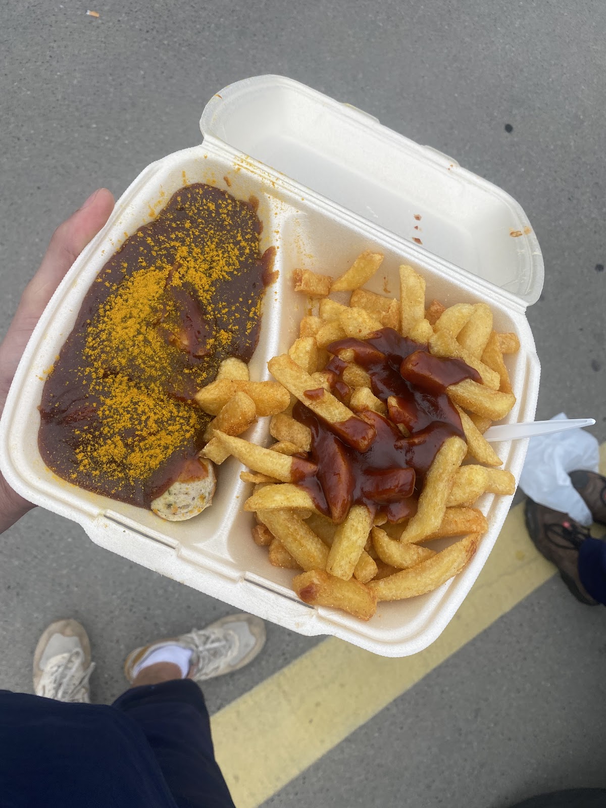 (Translated by Google) We ate two curry sausages with fries in the snack bar today. The fries were really very crispy, delicious. The sausage was good too. Service is nice too. Unfortunately I only give it four stars because the sauce wasn't really good. You could eat them, but I've eaten much better ones ????????