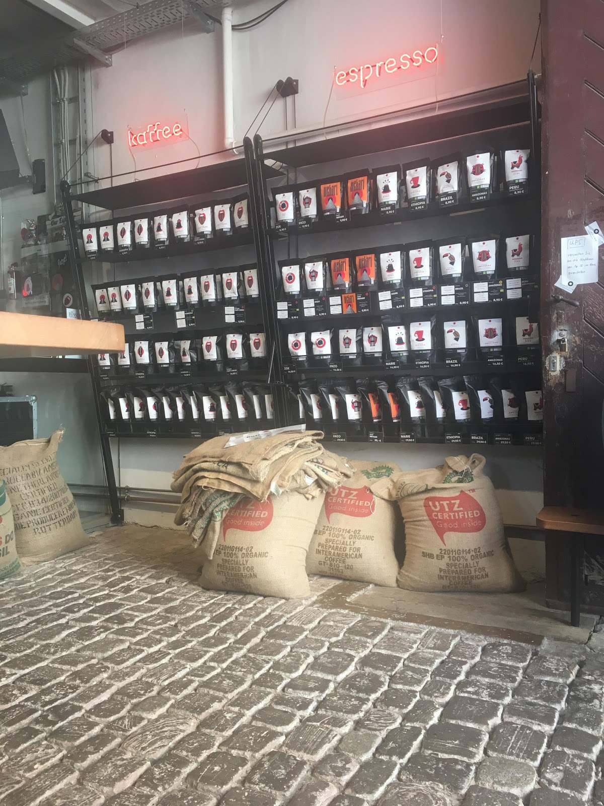 Ordered a double espresso of the most fruity espresso, could only taste roast aromas and almond was the most pleasant taste. Paid 3.80€ for a double espresso which is very expensive and I would prefer, taste wise, a commercial coffee for half the price of that drink. Maybe one coffee is too little to give a proper review but judging it as a third wave coffee I am disappointed and would not recommend it to people enjoying at least more bright, complex, tasting coffees.