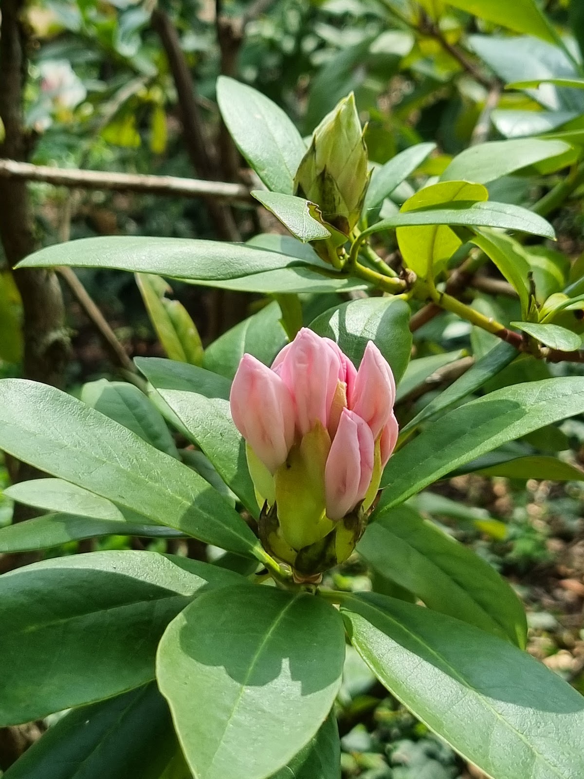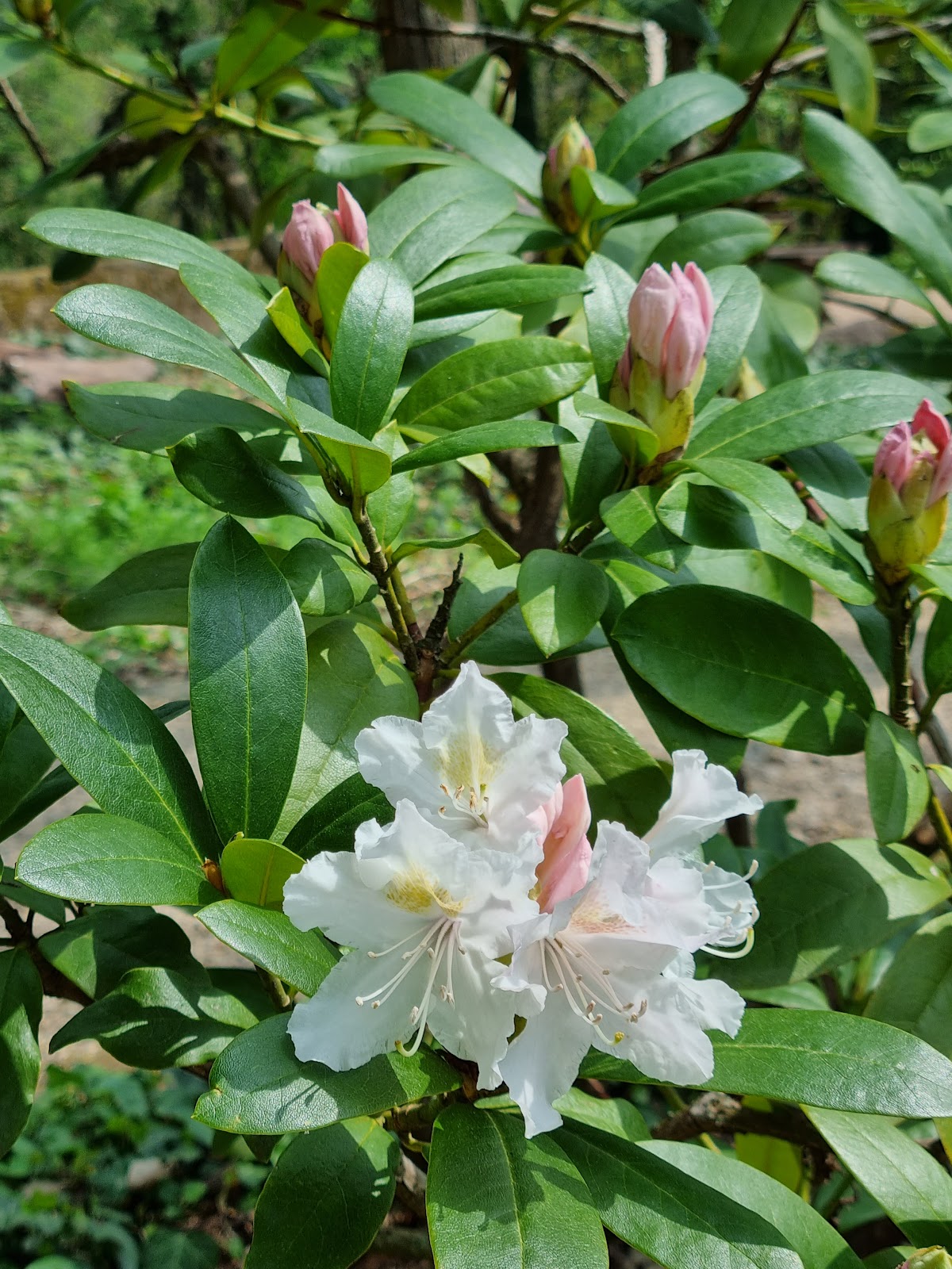 Schicke kleine Anlage mit Gedenksteinen, Parkbänken und Rhododendron