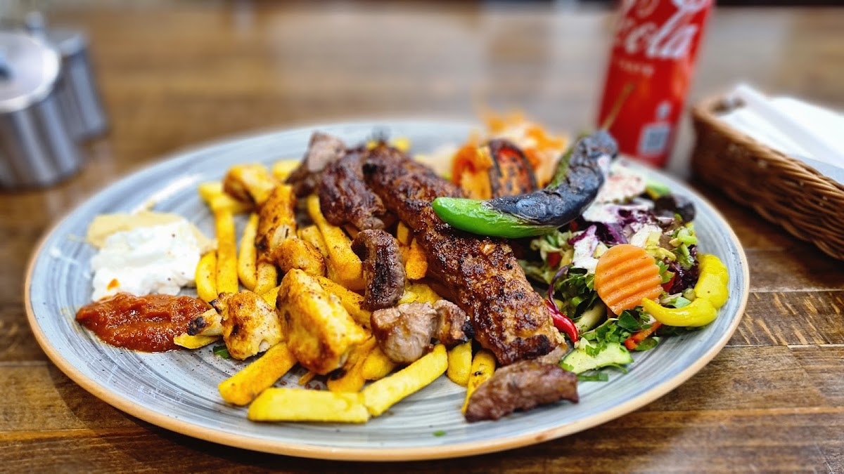 I ate veal-döner dish. The service was fast and the portion was quite big. The meat and the rice were tasty. Baklava was not so special, but still OK. There is a ‘halal’ sign.