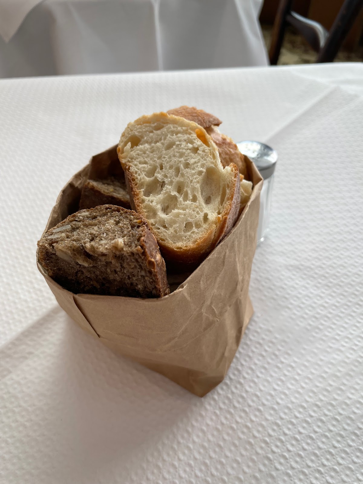 Delicious bread and fresh orange juice with a pasta straw! And really nice location one block away from river!