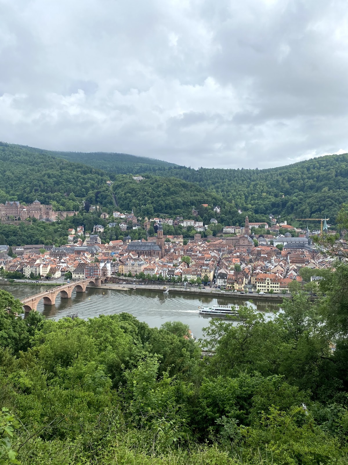 Hike of about 30 mins and you reach the top to a view like this. On the opposite side of Heidelberg Castle. So, you get to see both old bridge and castle together.