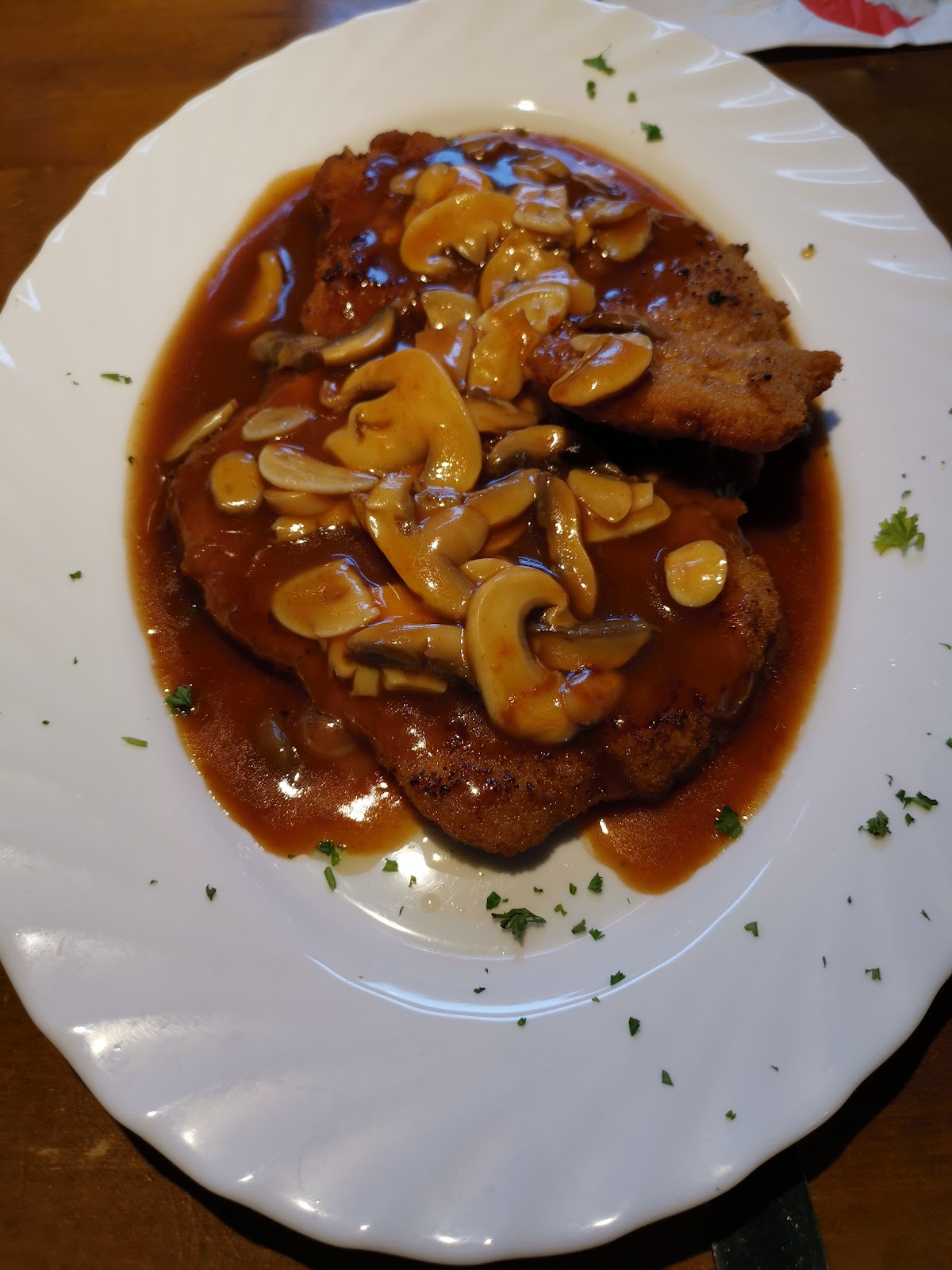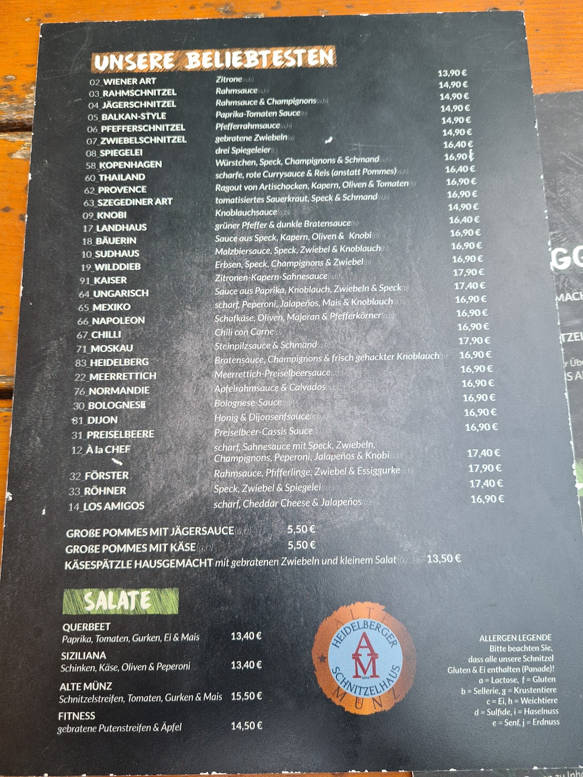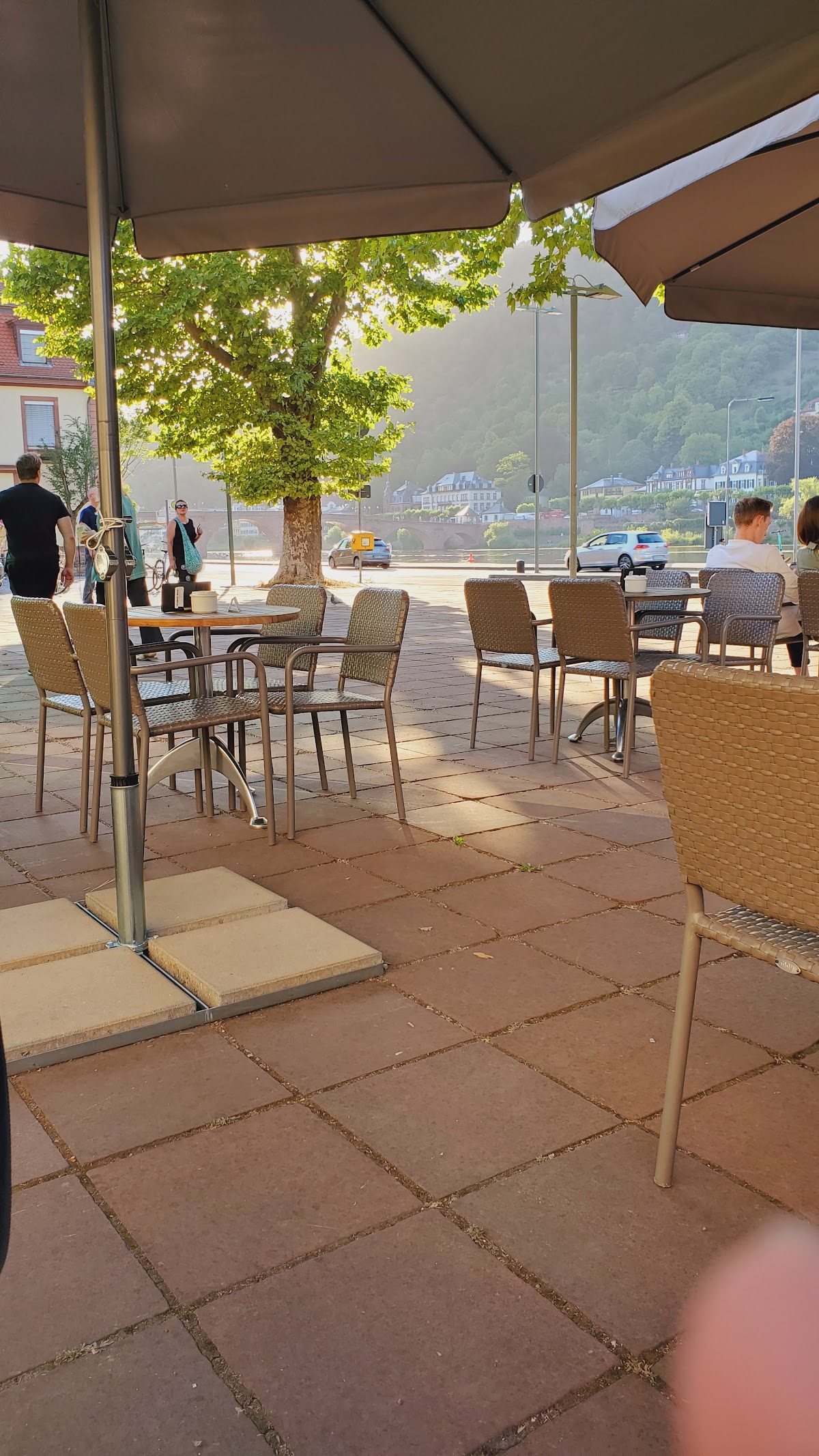 "Friendly" doesn't start describing the omnipresent owner's behavior, who in no time at all convinced us to wait 40mins by getting a table at the neighbor's Café for drinks. Schnitzel variety is unrivaled, portions are huge, no dish over €18. The outdoor tables dominate the quiet, shady square on the river, with a very nice view of the villas across.