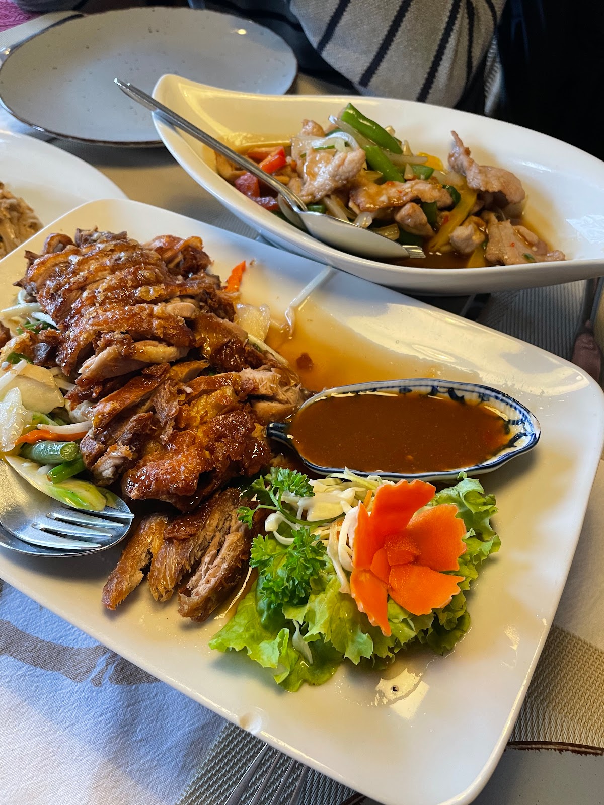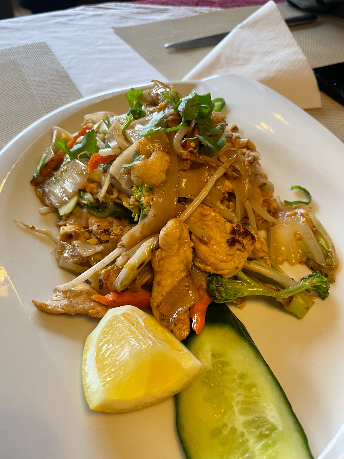 Superb food, wok hei flavour was very nice! Got the crispy duck with veggies, super nice. The gwey tiaow was also good. The papaya salad was balanced in flavour. And lastly the pork with thai basil was also tasty.