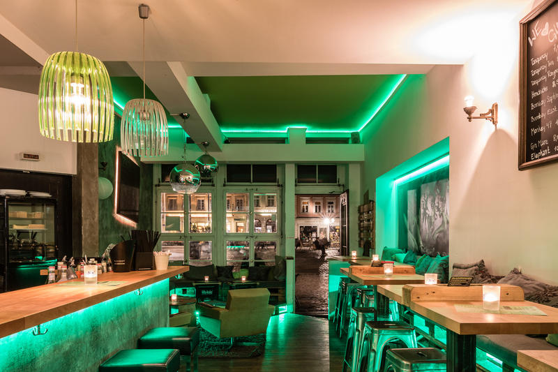 This bar is in the center of the plaza by the old church. Great for sitting outdoors and watching people pass by. The drinks are always good u0026 the flammkuchen was okay and the cocktails were cheap considering the location.