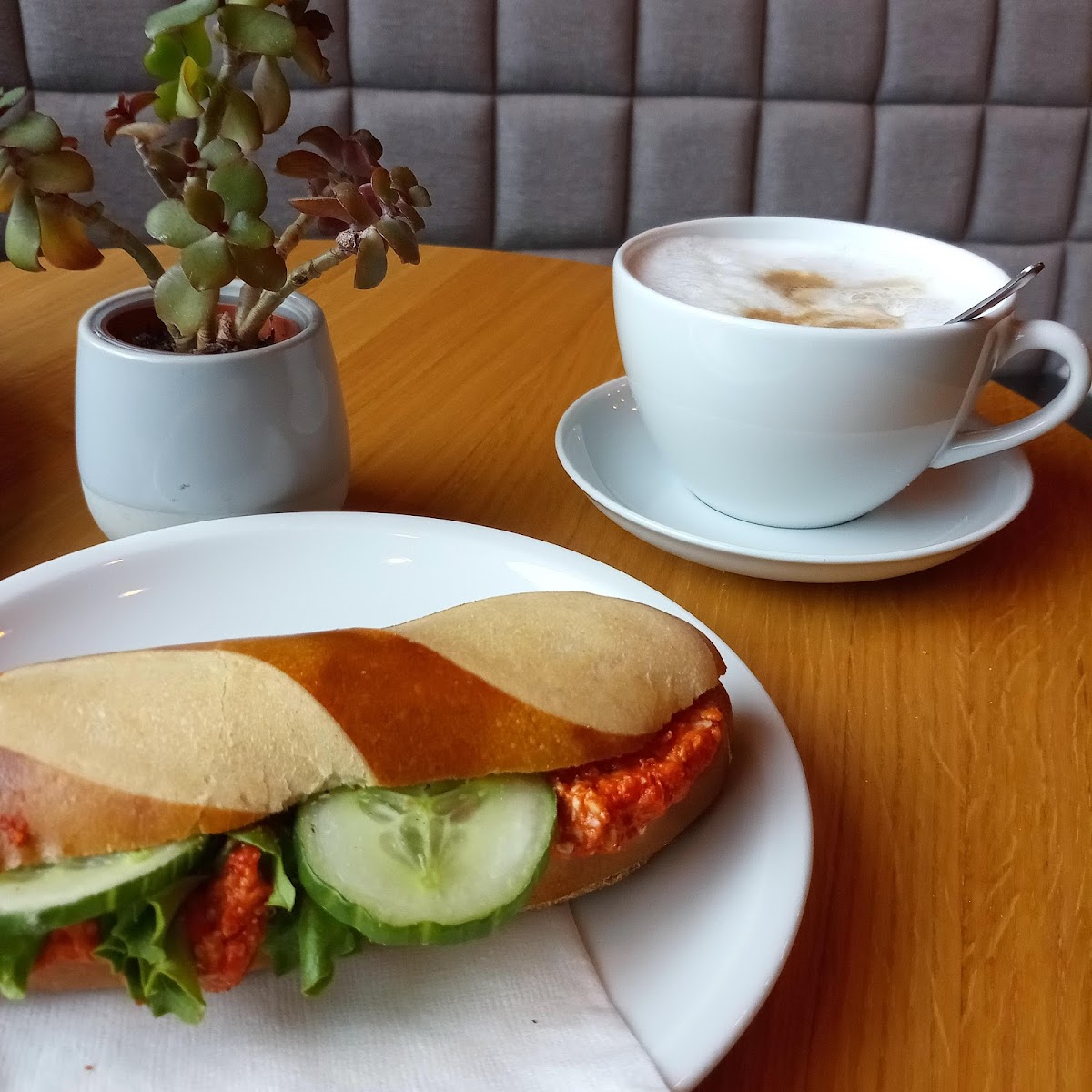 Tolles Personal, war schön zu beobachten wie sie mit den Kunden umgehen und welche Bindung da ist. Nette Einrichtung, lecker Cappuccino und belegte Brötchen. Auch meine Sonderwünsche wurden erfüllt.