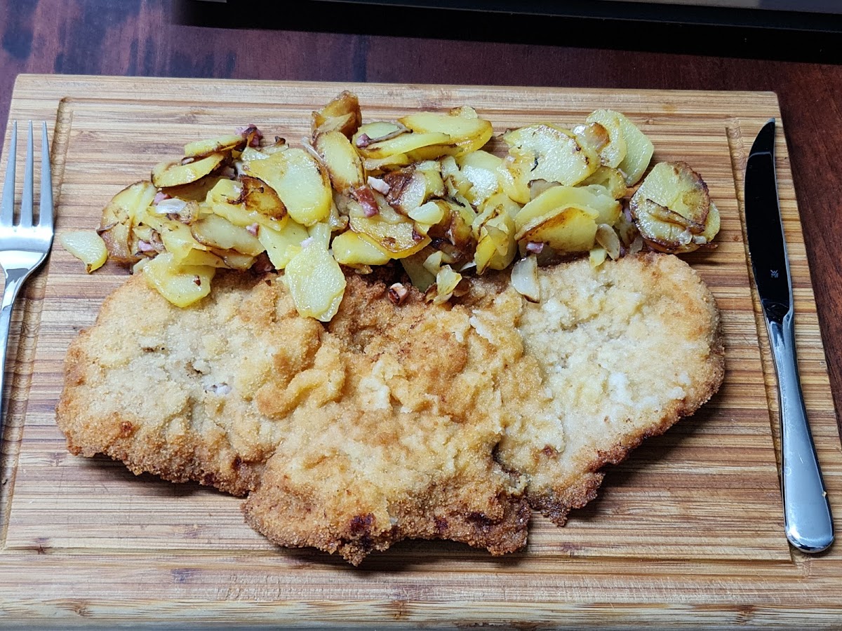 (Translated by Google) Simple pub with very friendly staff and very good food. You should be hungry. We each only had a 250g schnitzel with fries and mayo and were full. But there are also 500s and 900s. But the very attractive landlady "warned" us about that. ????