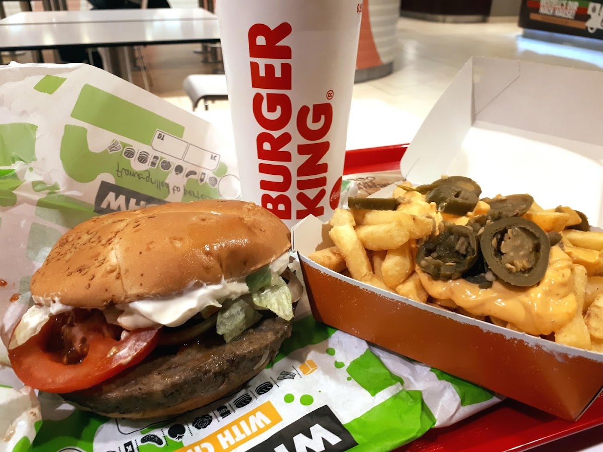 (Translated by Google) Unfortunately, only a very moderate, unsatisfactory meal today. The fries weren't fresh, they weren't crispy and unfortunately the chili cheese fries were also quite cold. The Rebel Whopper must have been lying around for a while and wasn't set up correctly. That's no fun, Burger King!