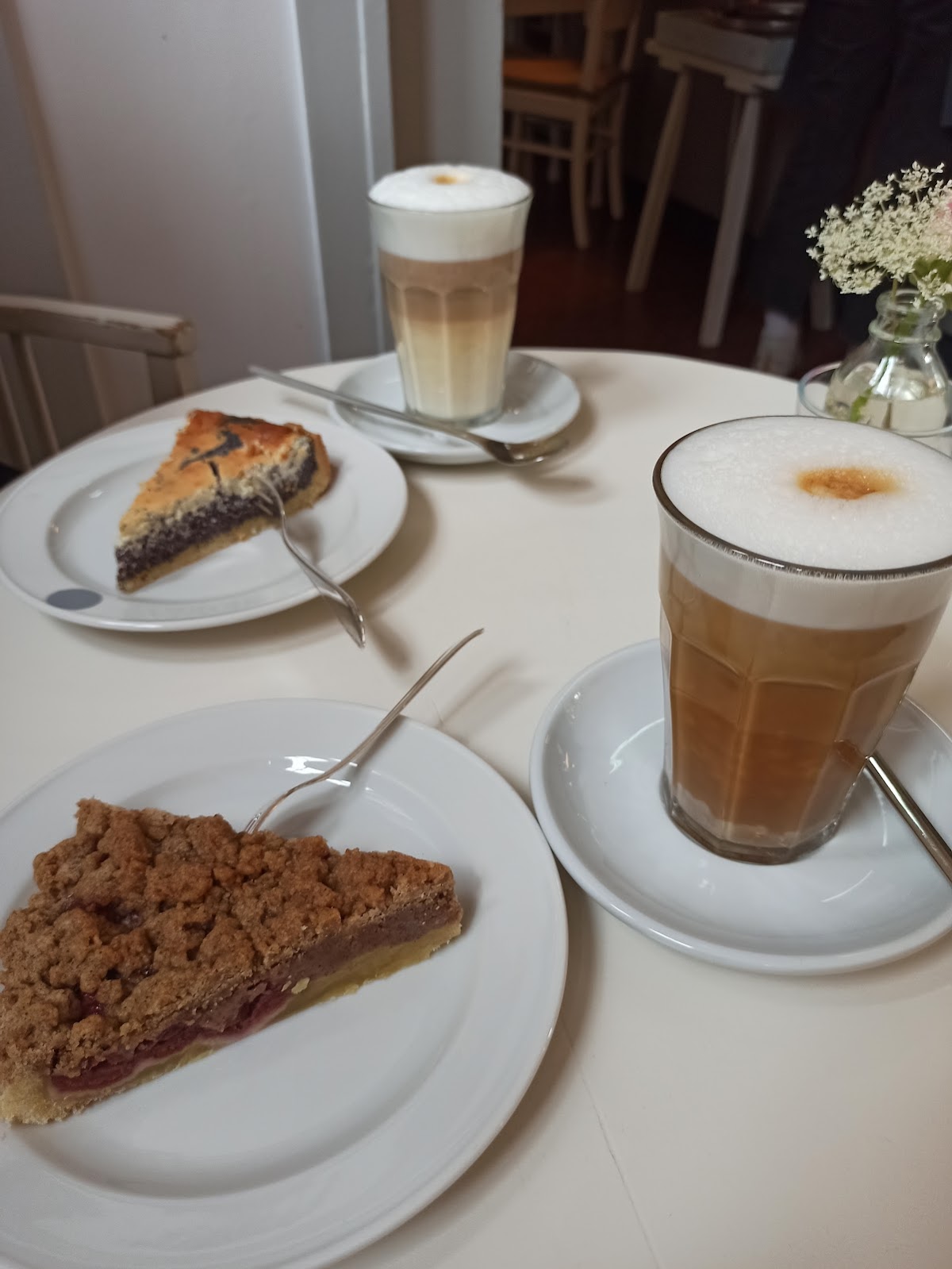 Gemütliches Café mit einer schönen Auswahl an Kuchen und Torten. Bei schönem Wetter kann man auch wunderbar draußen sitzen. Wir haben uns sehr wohl gefühlt und werden auf jeden Fall wiederkommen.