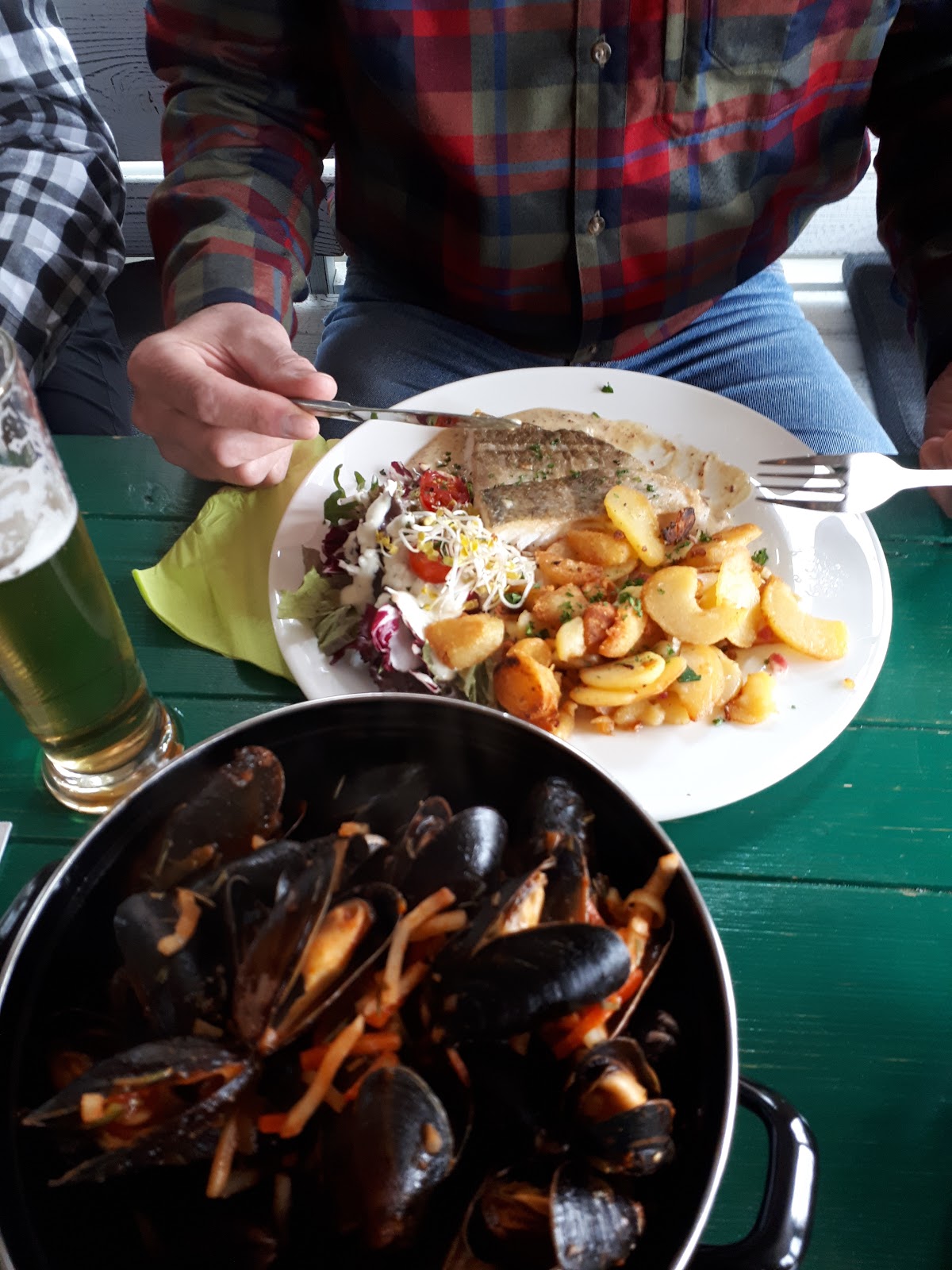 (Translated by Google) Great ambience inside and great views of the canal. Seers nice staff! (Chef?) Were on 08.10.2019 I eat three men in the local and were served very quickly from the kitchen. Before that there was a detailed and nice advice. Flatfish and mussels were delicious. So for us guys from the pot there was nothing to complain about !!