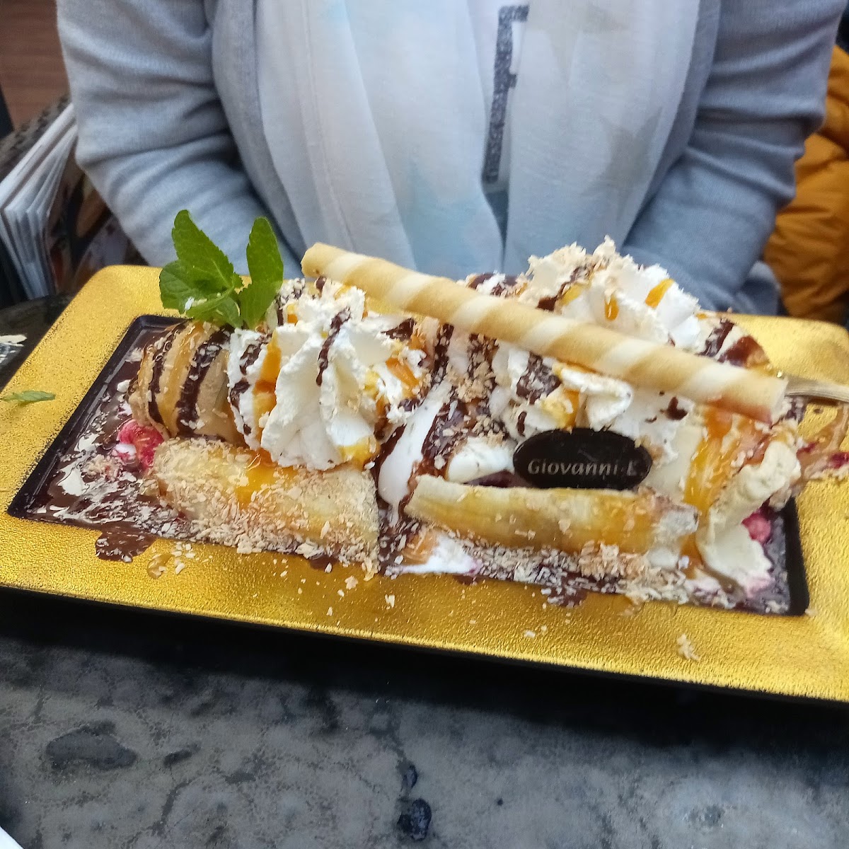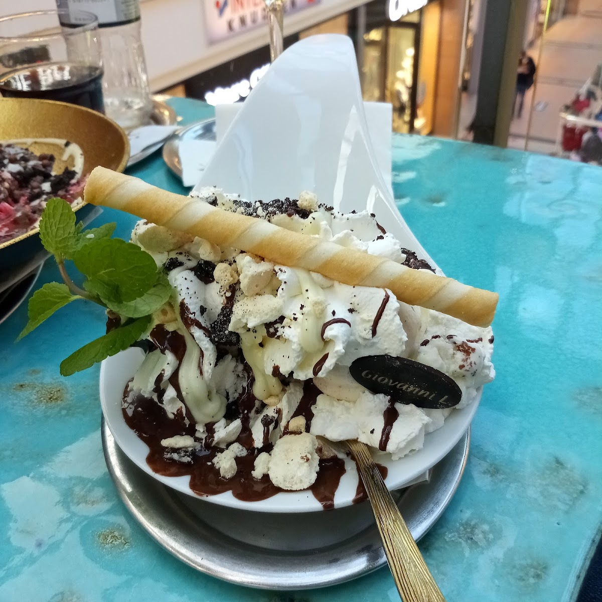 (Translated by Google) Enjoyed the classic spaghetti ice cream. What is new here is that you can order from the table with your cell phone via a QR code. Payment with PayPal didn't work, we had to do it later with the friendly waitress. It was funny how the ice was delivered by the robot, as you can see in the pictures. We dubbed him R2D2 right away! But will it prevail? The spaghetti ice cream was great as usual - just Giovanni.