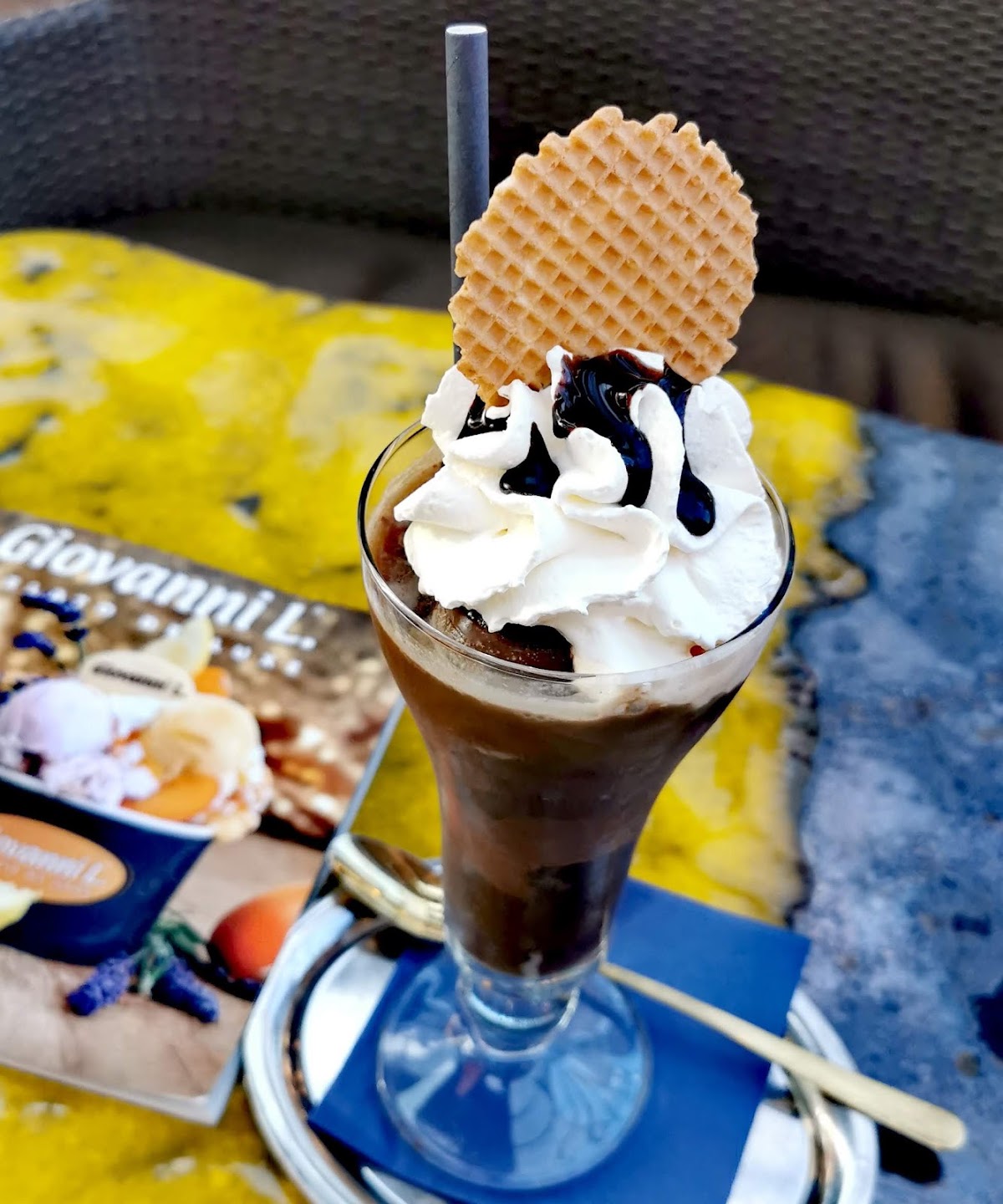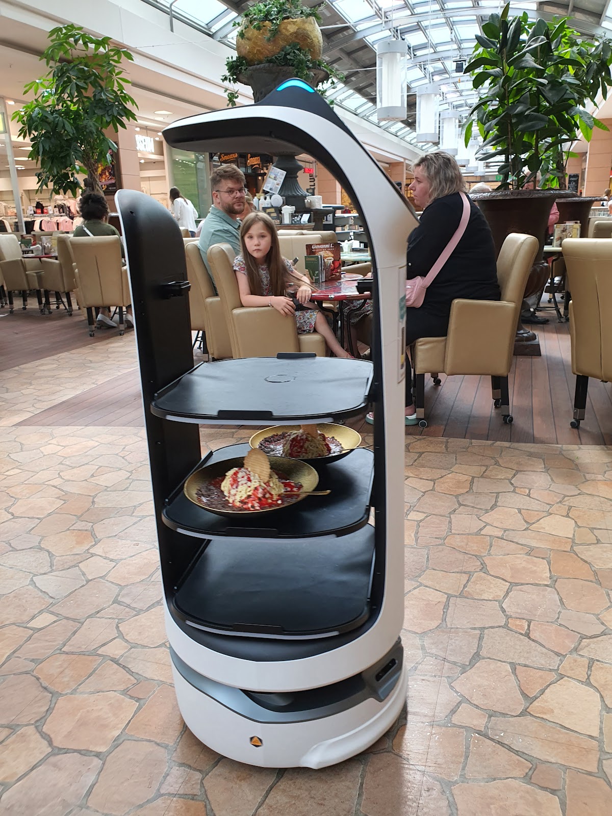 Das Spaghettieis classic genossen. Zu berichten ist hier neu, dass man mit dem Handy vom Tisch aus über einen QR Code bestellen kann. Bezahlung mit PayPal ging dann nicht, mussten wir dann später bei der freundlichen Kellnerin erledigen. Witzig war die Anlieferung des Eises über den Roboter, wie Ihr auf den Bildern sehen könnt. Wir haben ihn gleich R2D2 getauft! Aber ob es sich durchsetzt ? Das Spaghettieis war gewohnt Klasse - Giovanni eben.