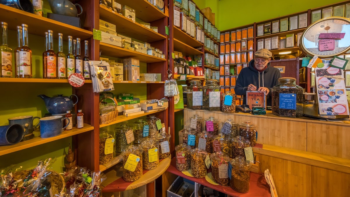 This is a most charming little tea shop, the owner is friendly and full of knowledge, and they sell exquisite teas from all over the world. But the reason why I stop by every single time I am in Kiel is their lovely vinegars. They are so full of flavour, and there is a wide variety of all kinds om aromas. You can also get liqeurs flavoured with fruit and berries, in addition to everything a tea lover can need. My collection of Roy Kirkham cups comes from this lovely little shop in Kiel. Go visit!