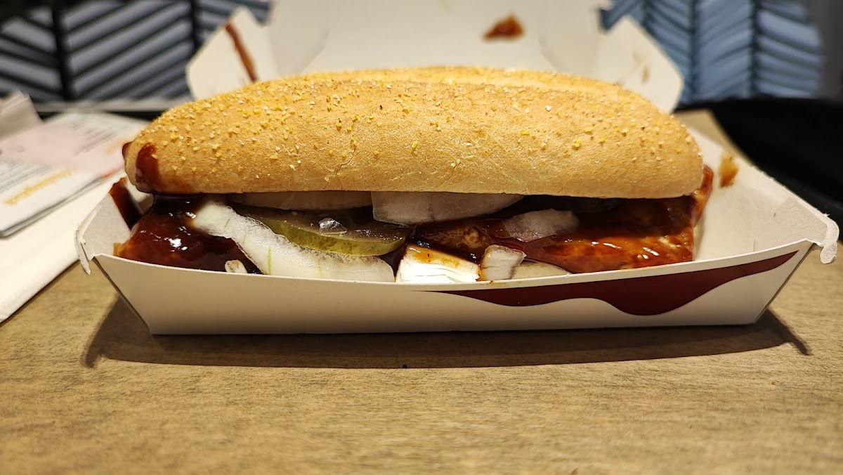 Got the chicken burger, which I usually like and haven't had for a while. Unfortunately this chicken fillet had a strange texture with hard parts in the meat, almost like clumps of muscle meat. Bought as takeaway but ate in. Was quite busy in the afternoon but the staff cleared the treats as quickly as they could and there was always a seat. People could bring their own drinks from outside, much appreciated! It's strange that the toilet has 2 sinks, but only one sink has a tap. There's a children's play area. Strangely there's no McDonald's wifi like all McDonald's in other countries I've been to.