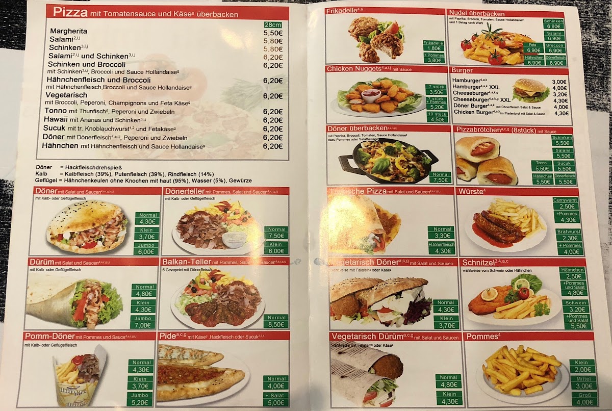 (Translated by Google) The meat doesn't have much taste, I think it used to be better and 9€ for a jumbo Dürüm with a tablespoon of sauce is too expensive for me. Breads are homemade but the kebabs are children's kebabs in many other shops.