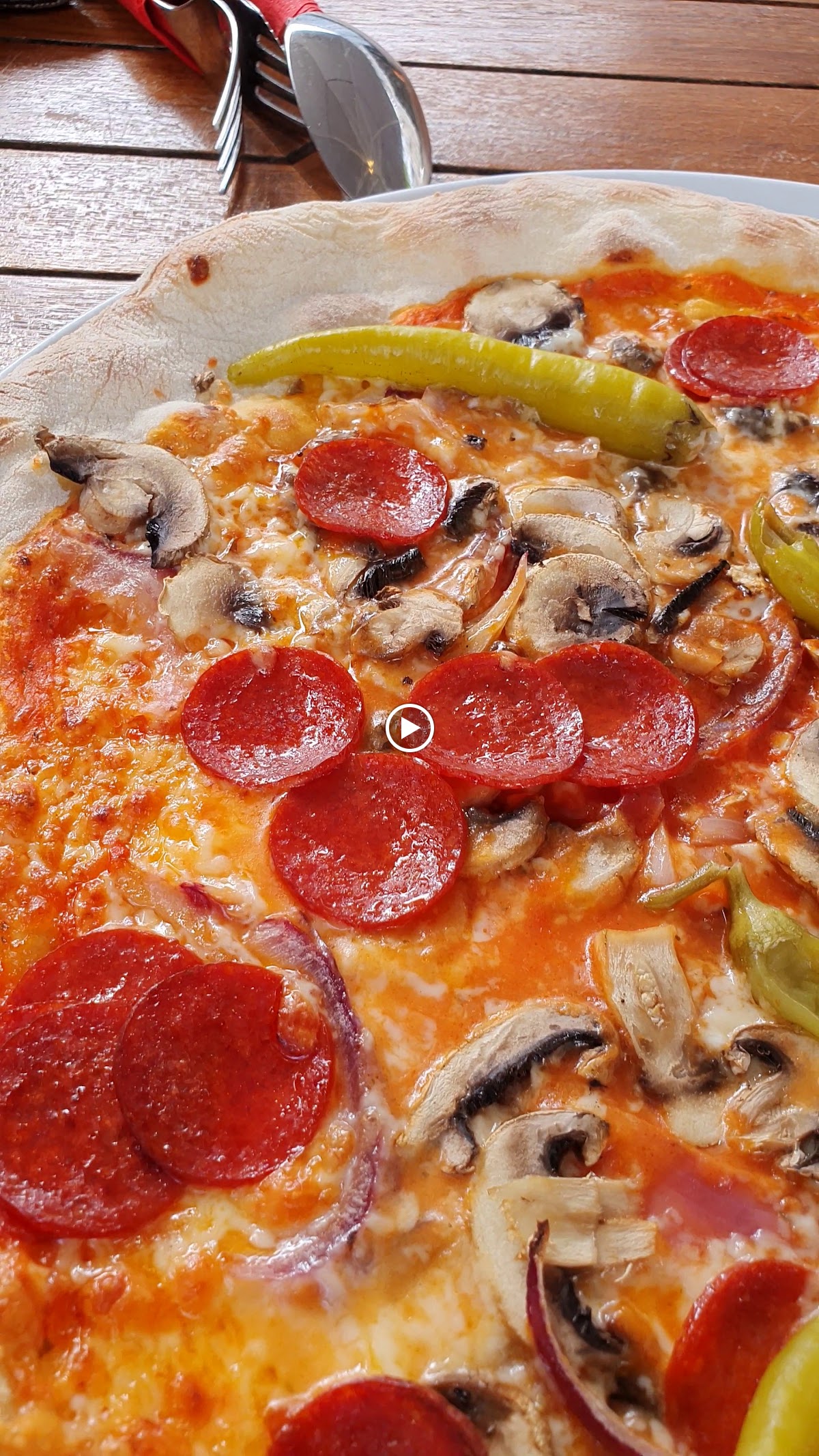 Very hard crust and very high price for the quality. Also is not an originally Italian pizza.