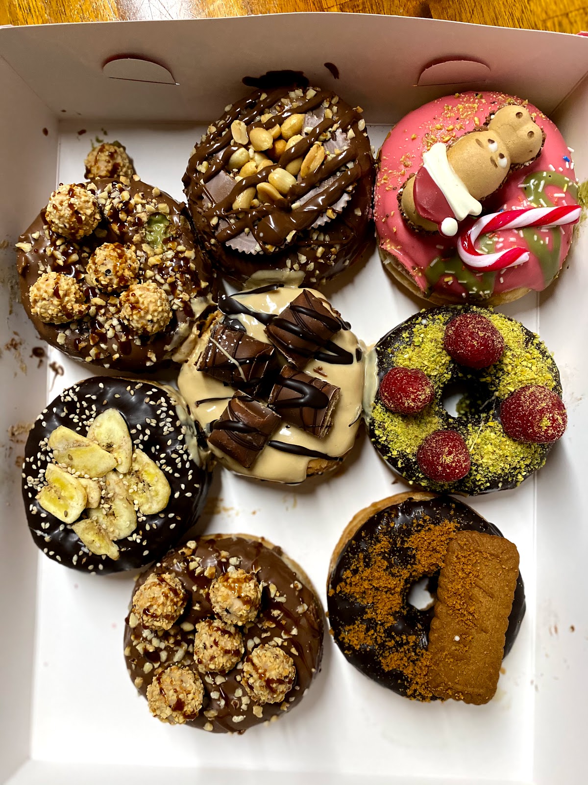 Der Hype im diese Donuts kann ich persönlich nicht nachvollziehen. Also ja am Anfang war ich sehr neugierig, weil die Teile sehr gut aussehen und toll belegt sind. Wir haben etliche Sorten probiert. Leider ist geschmacklich nichts raus zu holen. Alleine optisch überzeugen sie uns. Der Teig schmeckt nach nichts, die Fettglasuren sind eben nur Fett, die Füllungen sind leider auch nicht besonders schmackhaft, die Toppings sind gut, wurden aber nicht von ihnen gemacht. Sorry, aber danke für die wirklich nette Bedienung.