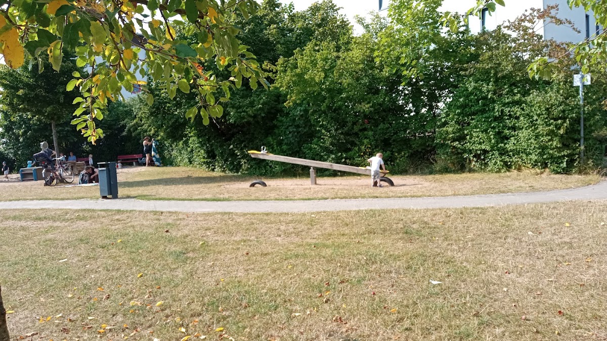 Hach, der Spielplatz gefällt uns immernoch sehr. Inzwischen zwar ein wenig zu groß aber 'ne kleine Runde schaukeln od. hüpfen macht immer Laune. Die Idee ein Trampolin mal etwas robuster und für Straßenschuhe geeignet als Federmatte zu bauen, finden wir super. Sehr praktisch für sie schnelle Nutzung ist die Tatsache, dass der Federbereich unterhalb von ebenerdig liegt. Und auch die Matte ist vielleicht 20cm tiefer, damit Aufsteigen aber auch Rein- und Raushüpfen für fast alle Größen möglich ist. Mehr als eine wäre natürlich toll.