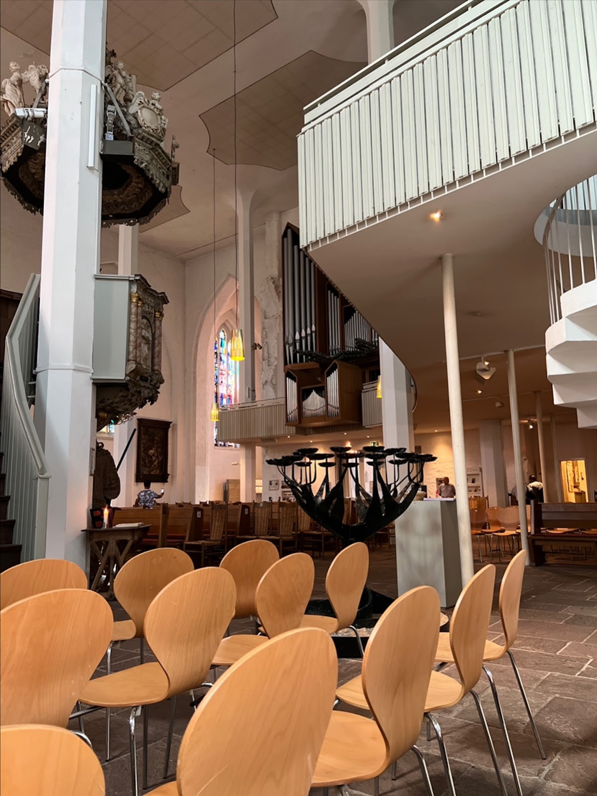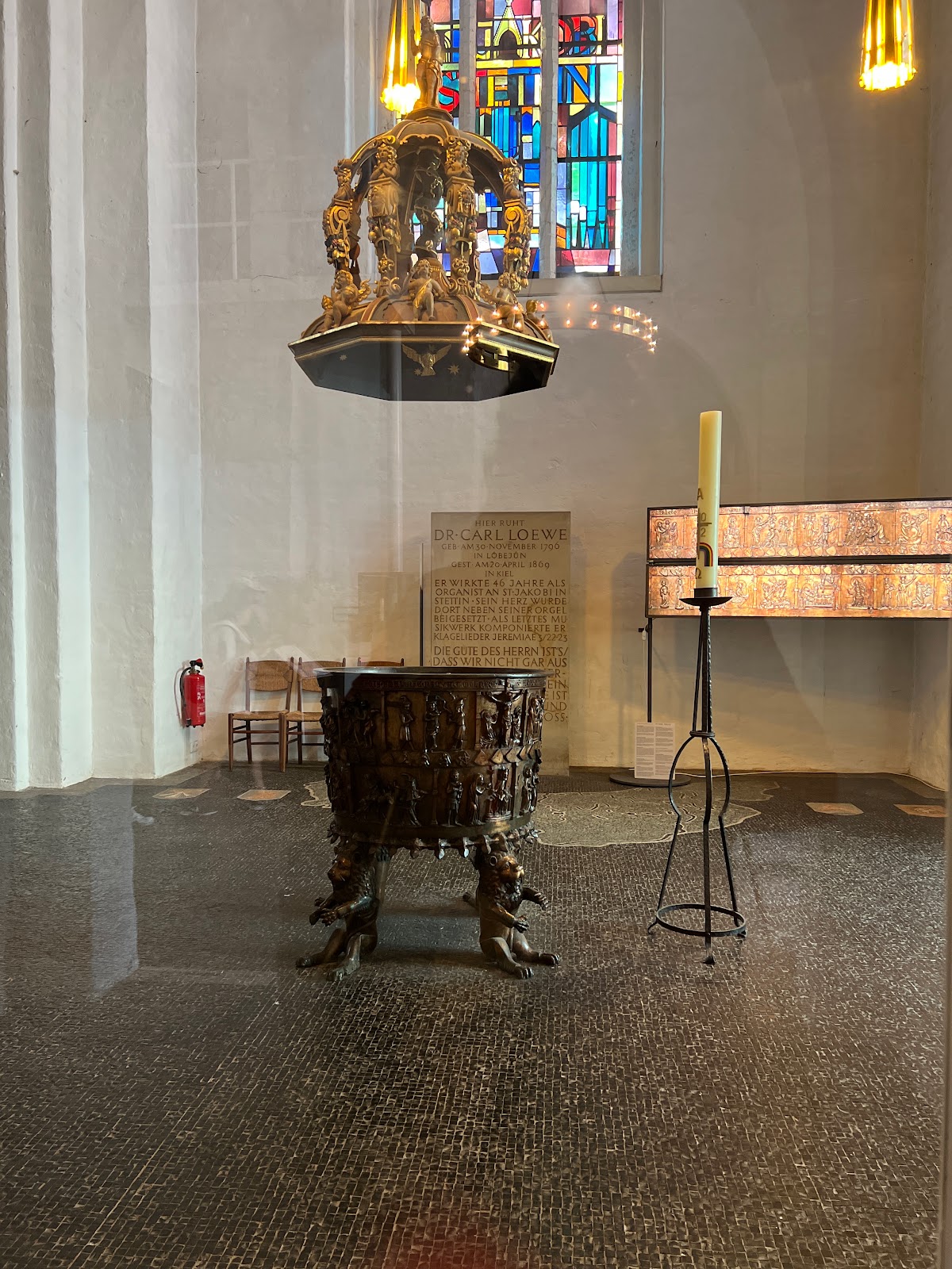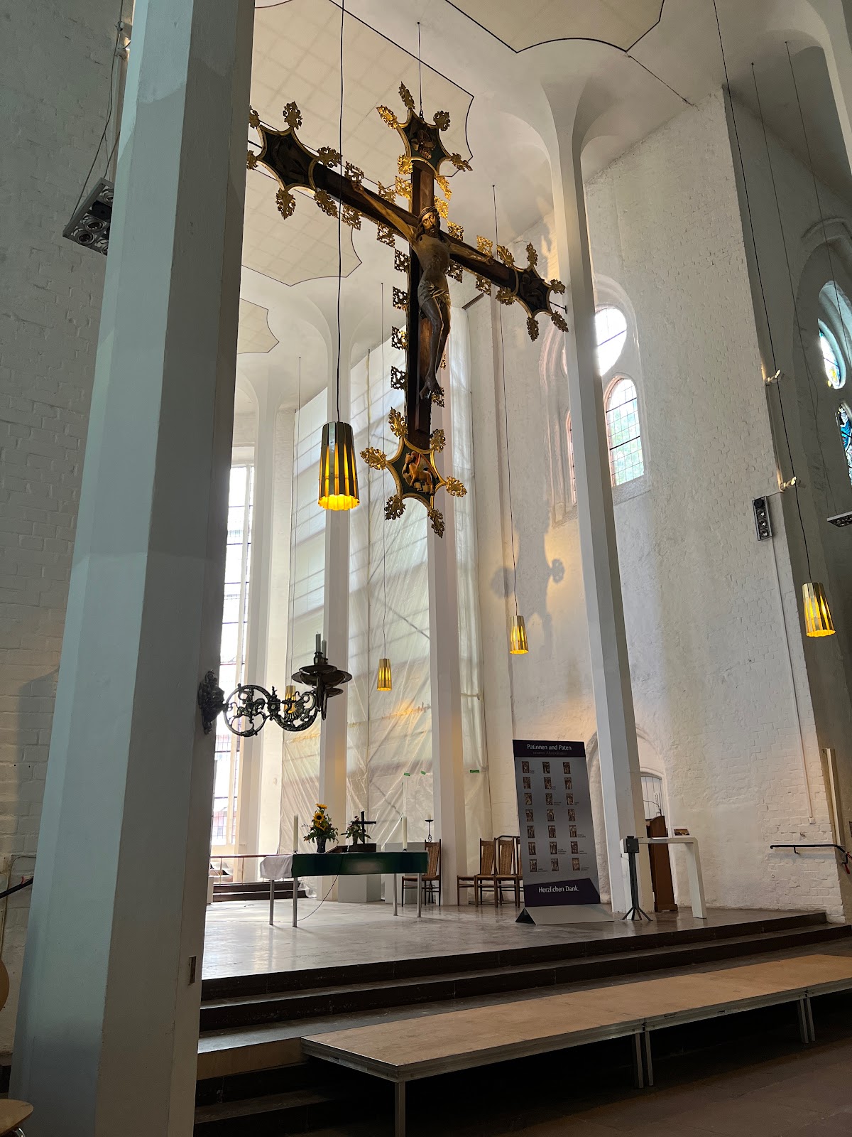 What an amazing old church. It was completely destroyed in the World War II. It is still under construction. I love the way the put in the modern style and keep the old up. I love it that it is so less with Prunk and Schi schi. Simple and smart.