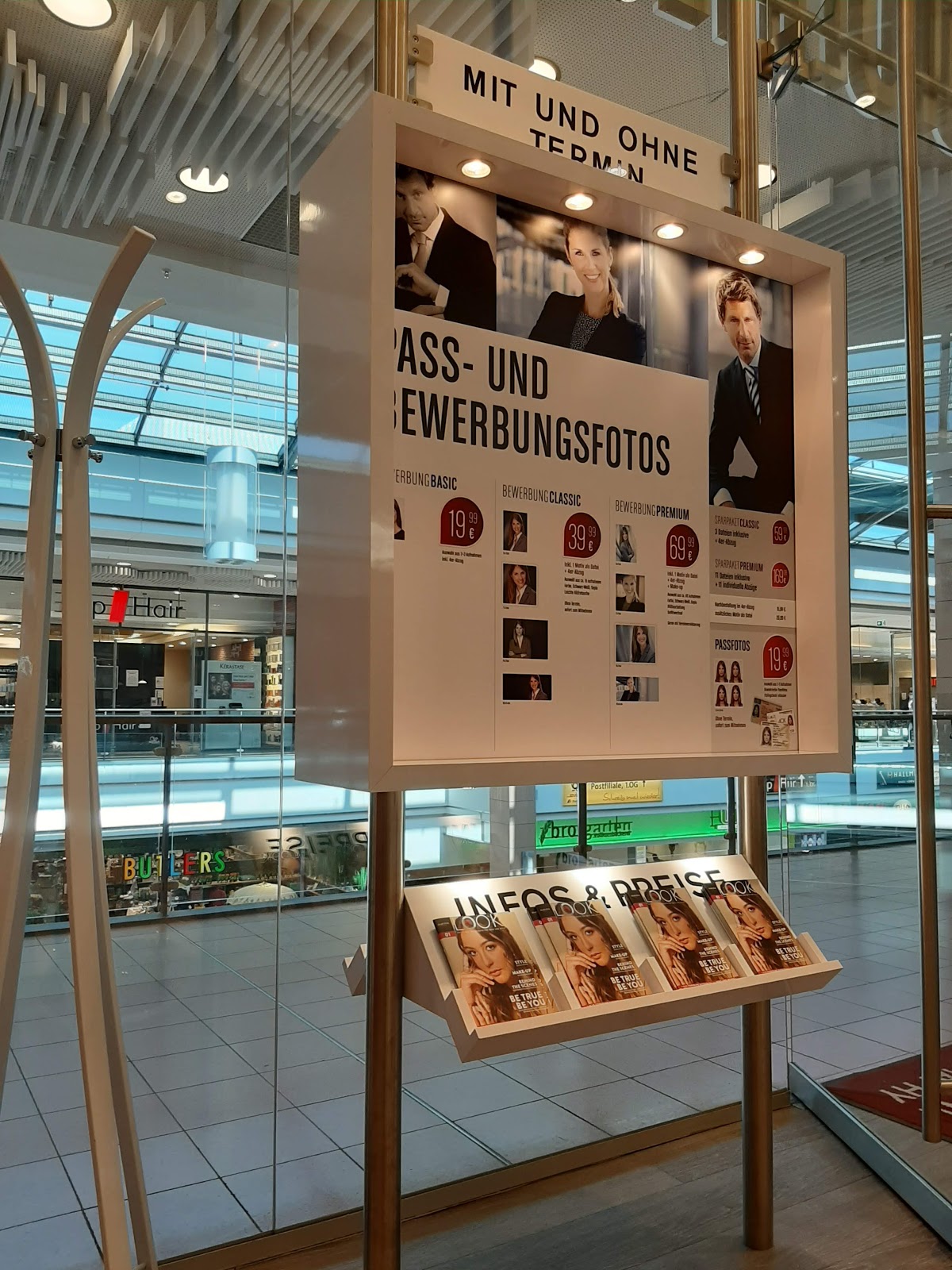 Sehr gut, dass man sich am Eingang über einen QR Code einen Termin holen konnte. So konnten wir in Ruhe ein Eis essen gehen und wurden dann "alarmiert" und hatten so keine Zeit vertan. Haben dann Passbilder biometrisch und andere machen lassen. Es wurde noch diese oder jene Zusatzleistung angeboten. Sind bei der Grundversion für 20 Euro geblieben. Konnten uns aber anschließend die Bilder downloaden - und das ist natürlich sehr gut!