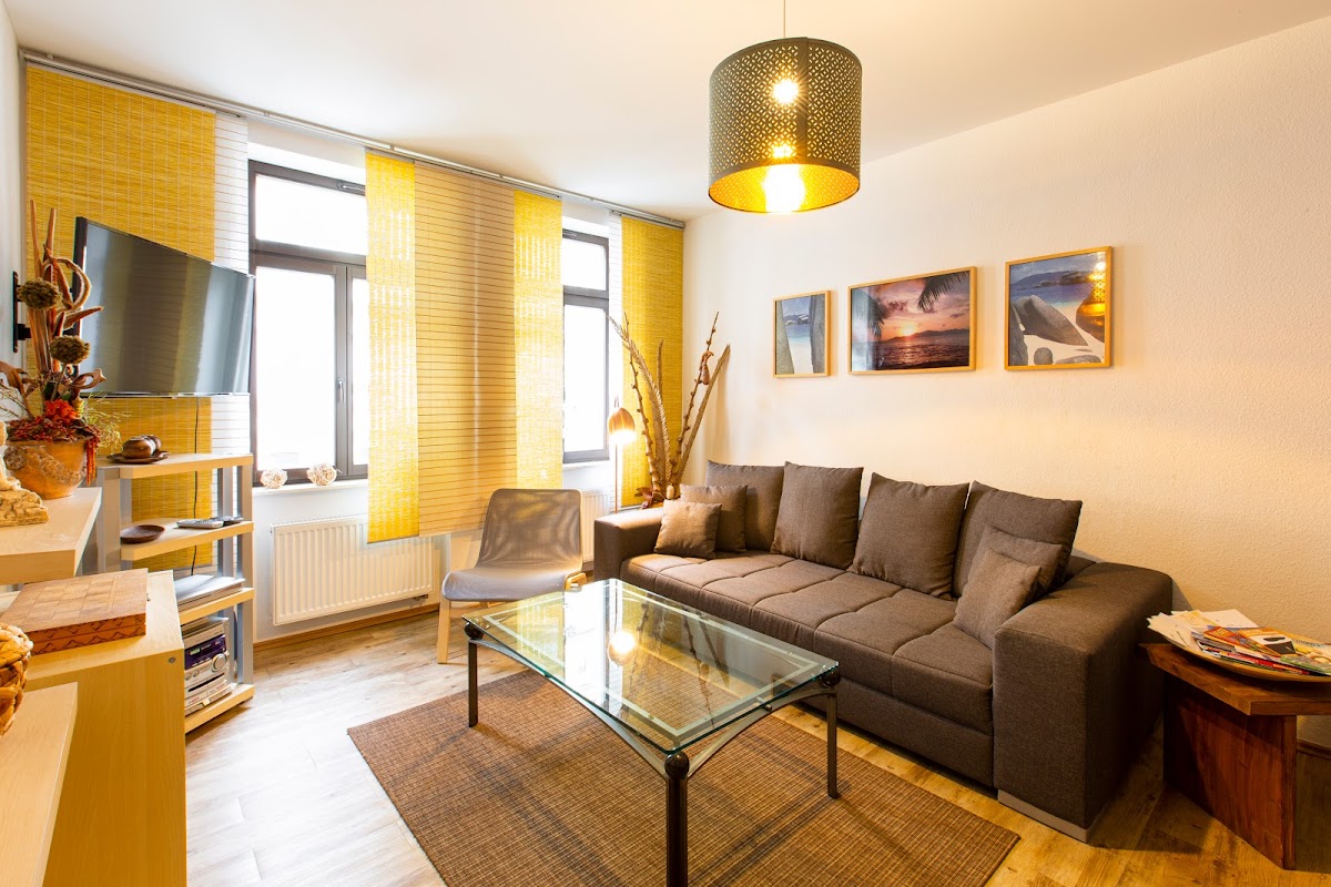 Man sollte sich keinesfalls von den alten Fotos bei Google Streetview abschrecken lassen, das Gebäude hat sich fein raus geputzt. ;) Unsere Ferienwohnung war modern und liebevoll eingerichtet, keinesfalls bunt zusammengewürfelt wie bei manch anderen. Die Ausstattung war absolut spitze, selbst Nudeln und Kaffee waren vorhanden falls man etwas vergessen hätte. Die Begrüßung war herzlich.